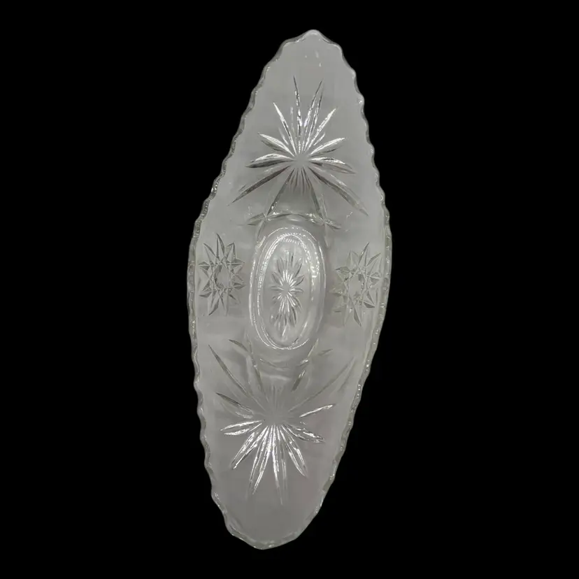 Featuring a beautiful Star of David pattern, this gondola-shaped dish is a versatile serving piece for relishes, gravies, nuts, candies, or maybe a banana split.