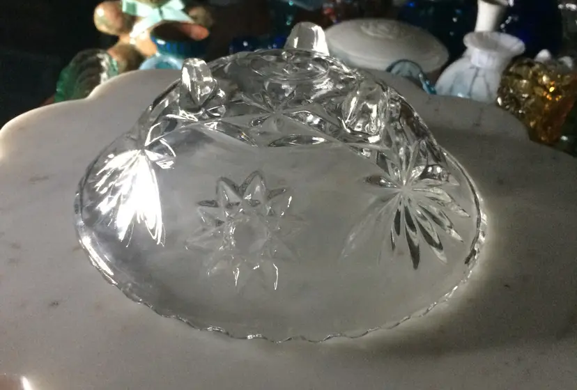 Vintage Anchor Hocking Star of David Candy Dish 6 3/4" wide x 2 1/2" tall. NEW to District? Enter code Michel42 into your wallet prior to your first purchase and save $5 off of $10 or more! Happy Hunting! Thank you for checking out my items! Give me a Follow and I'll Follow you back!