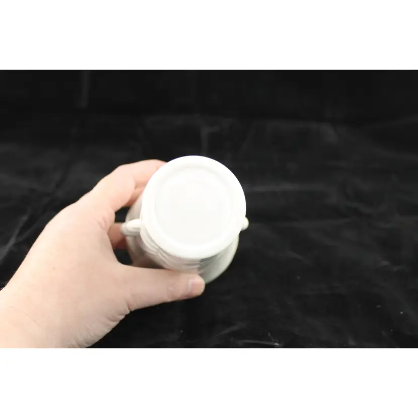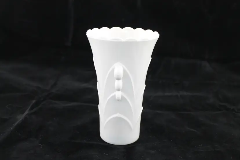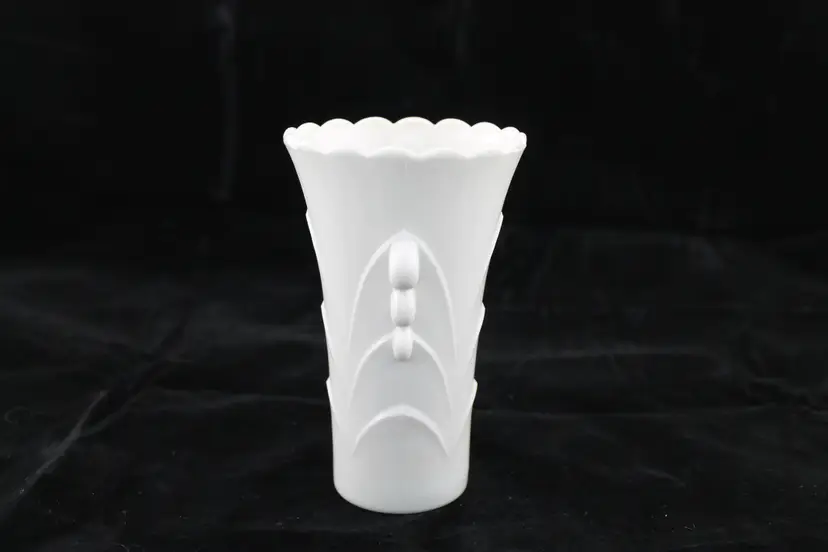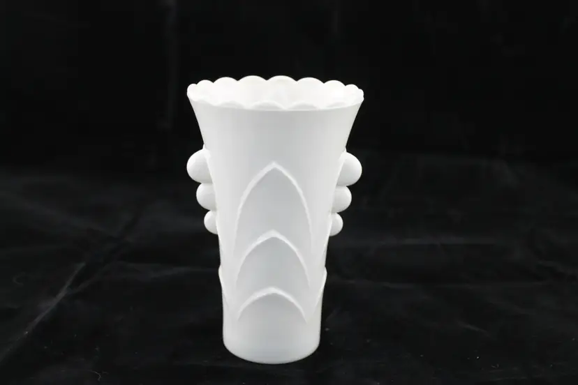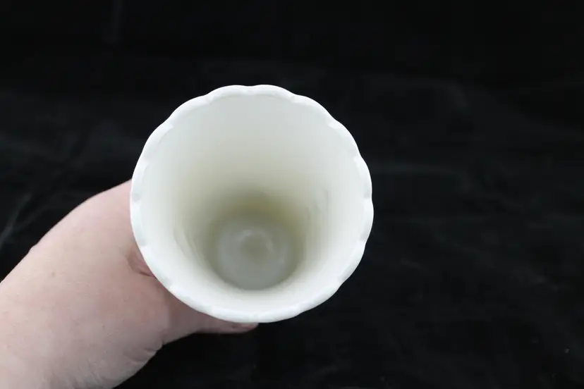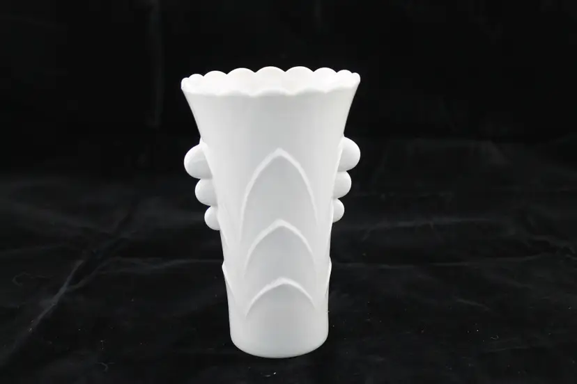 THIS IS A VINTAGE ANCHOR HOCKING VITROCK VASE. THERE ARE NO CHIPS OR CRACKS. IT IS WHITE OR MAYBE JUST OFF WHITE IN COLOR. IT MEASURES APPROX. 5 1/4" TALL, 3 1/4" ACROSS THE TOP AND 2" ACROSS THE BOTTOM.