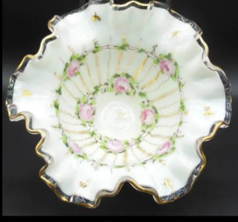 Vintage & Scarce Fenton, Charleton 'Stitched Roses' Decorated Crimped Silver Crest Bowl