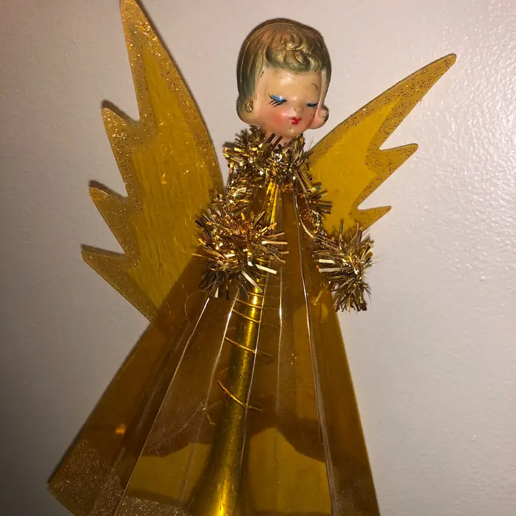 Vintage Angel Tree Topper Acetate with Rubber Head 7 1/2"H
