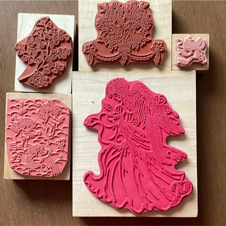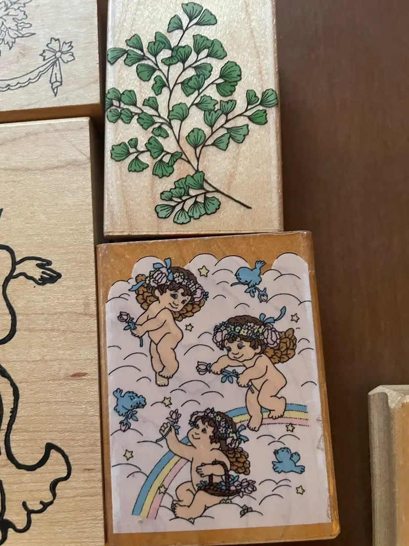 This listing contains 5 vintage rubber stamps with angelic and floral themes. These stamps are in good condition. There are signs of use on a few of the stamps while others are untouched. These would make a great addition for your collection. Perfect for your favorite craft.