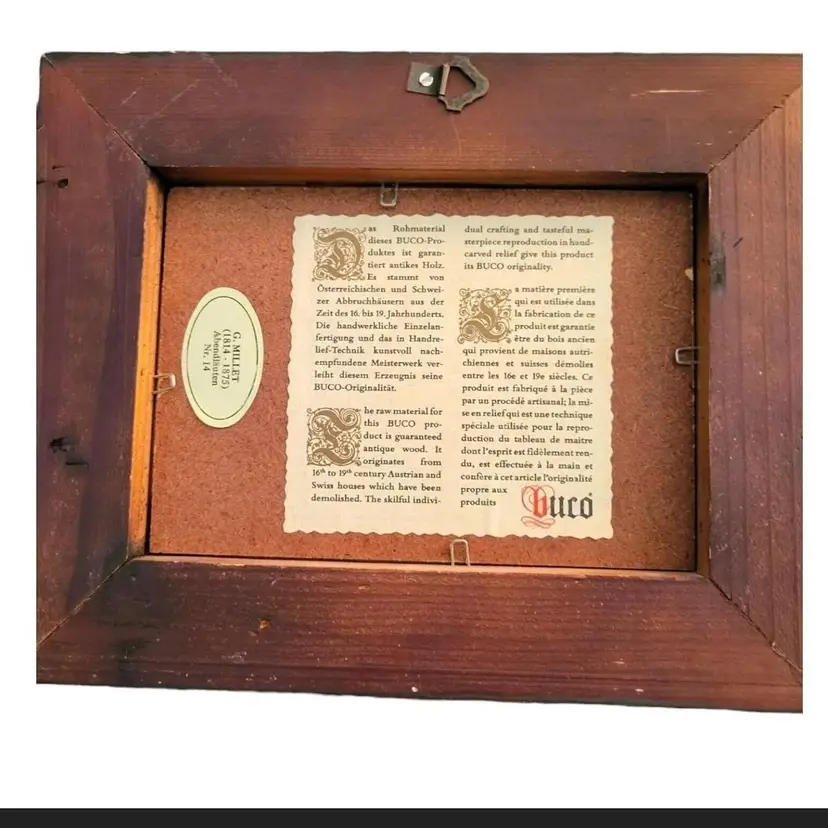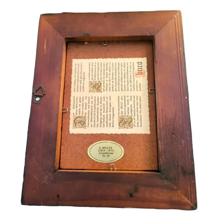 Mini picture in buco frame. Info is attached to the back of the picture and is shown in the photos.