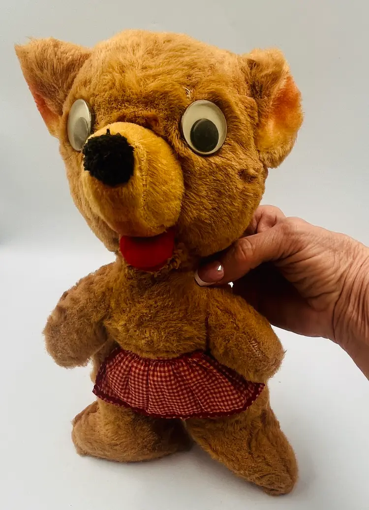 He is inn amazng condition! He is from the 1960s with googly eyes and ready to be icluded in your ollection Measures: Approx - 13"