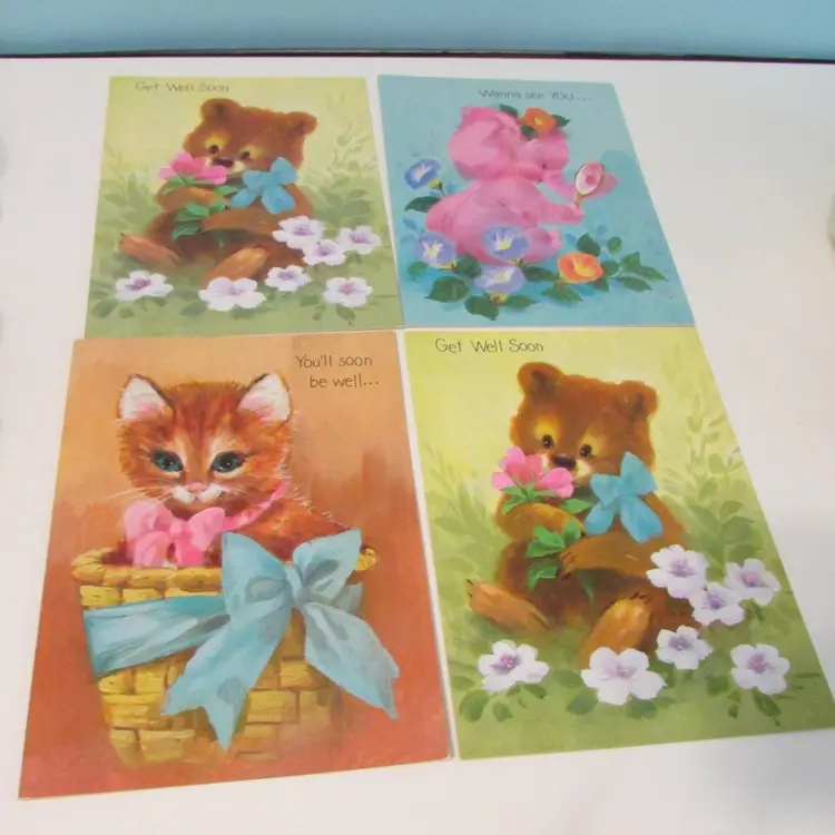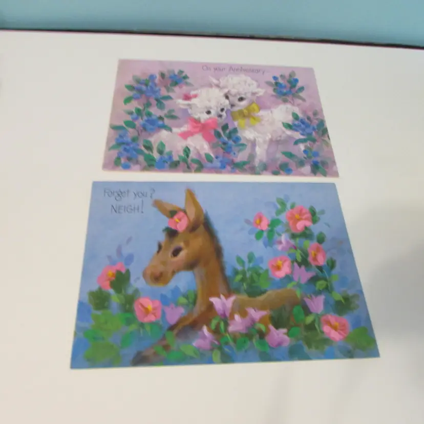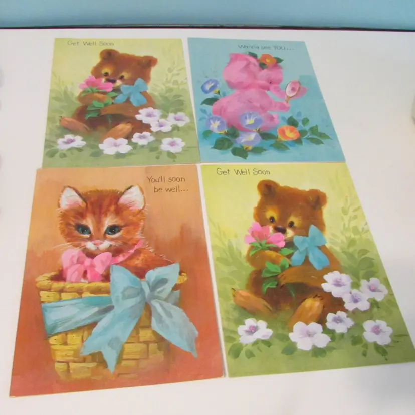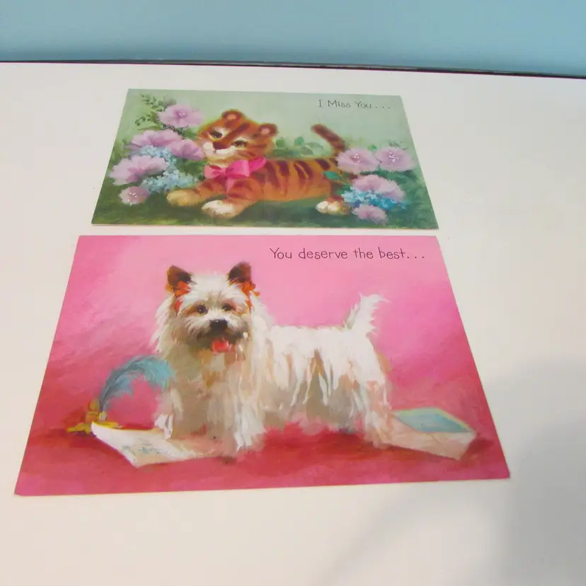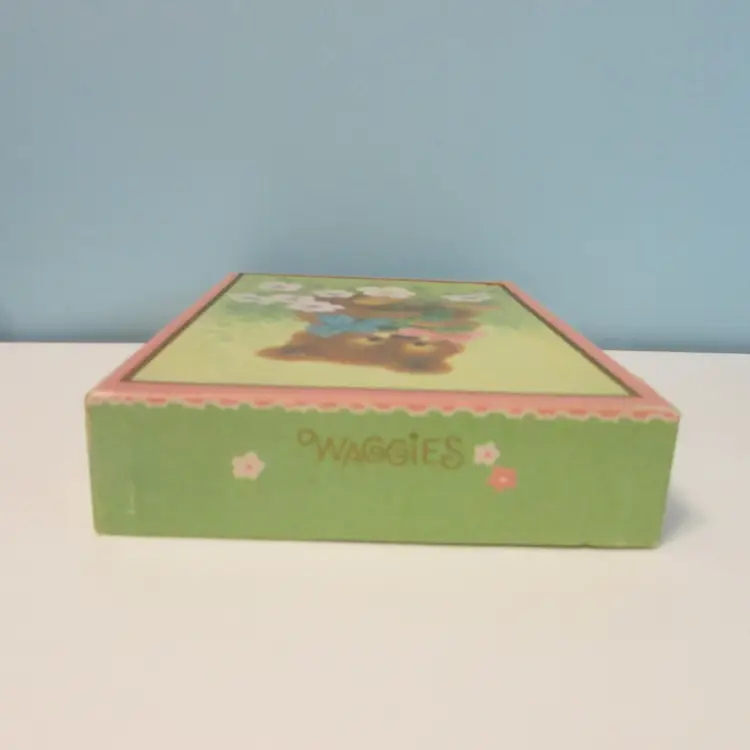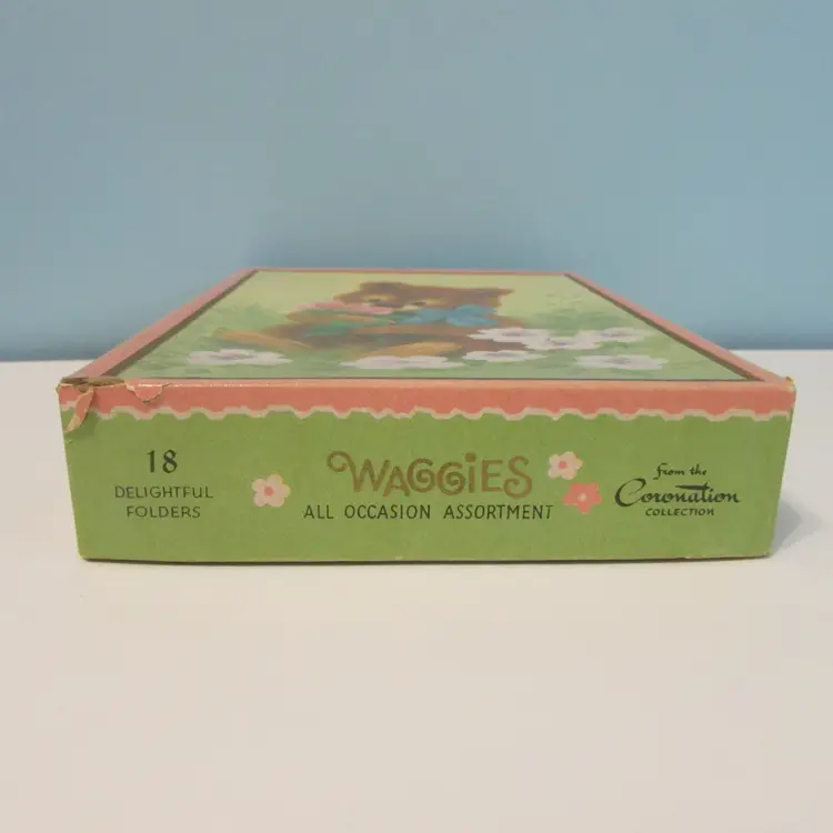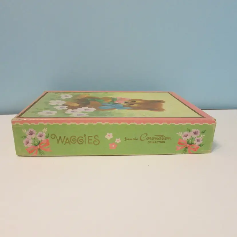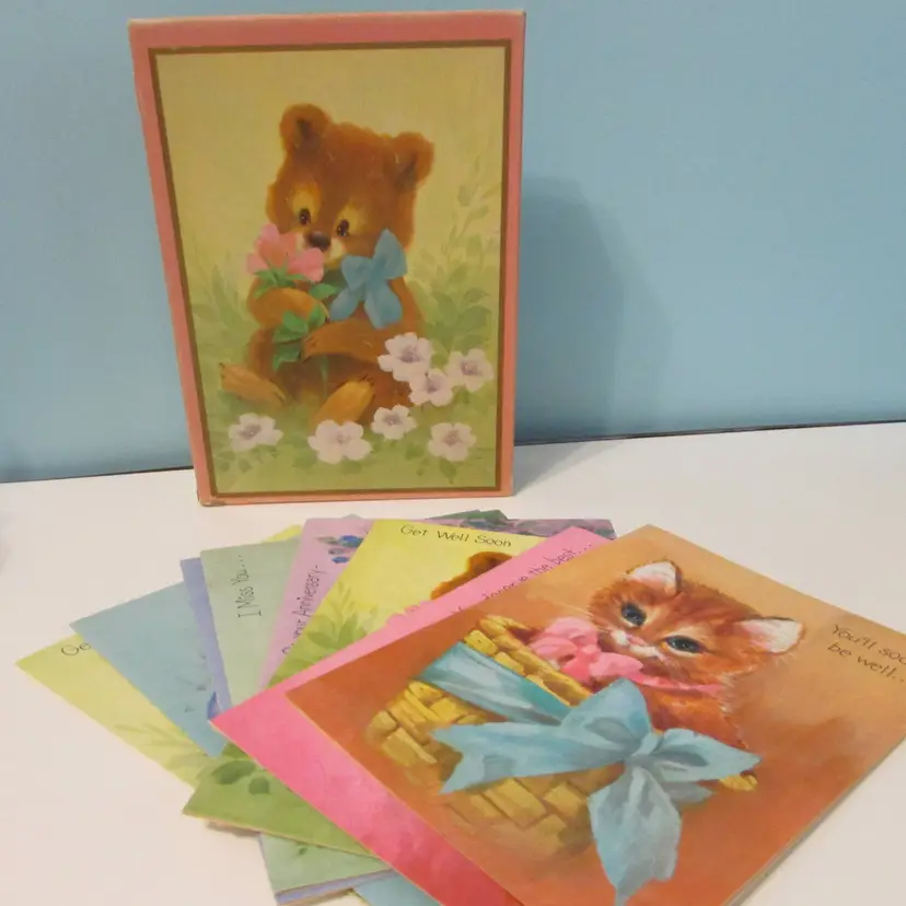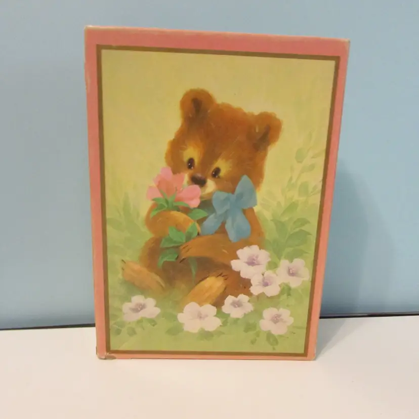 This adorable set is in good condition, the box has a rip on the inner box, but still adorable to display. There are 8 cards and 6 envelopes. This is shipped from a smoke free home. Thanks for looking!