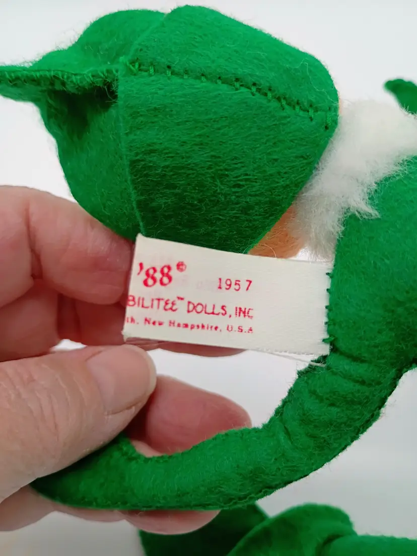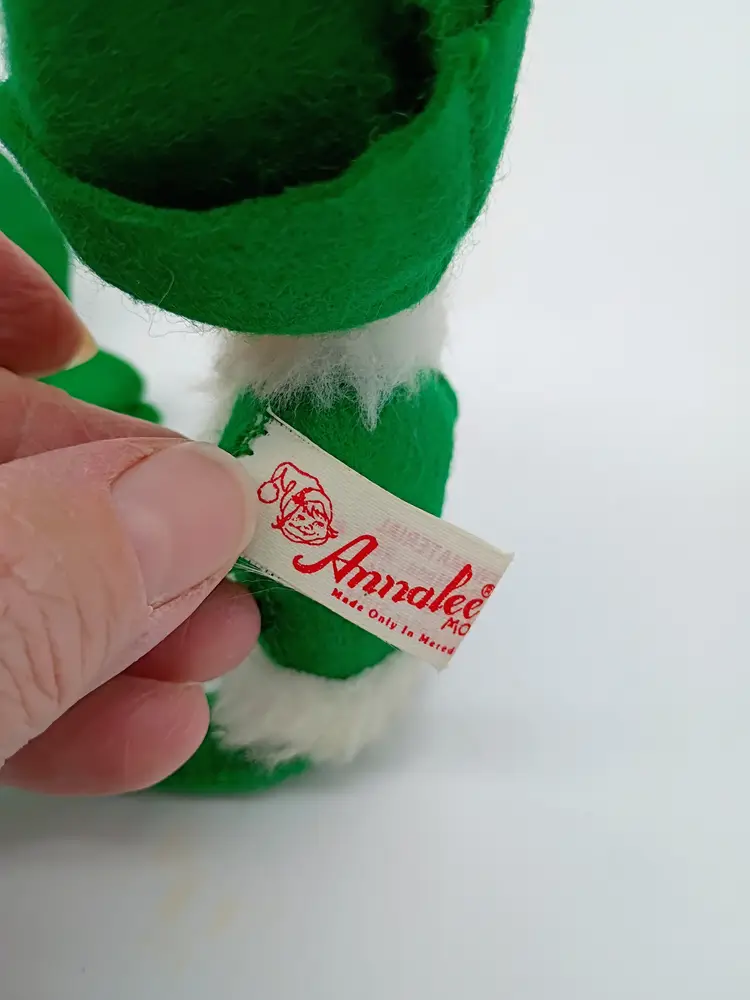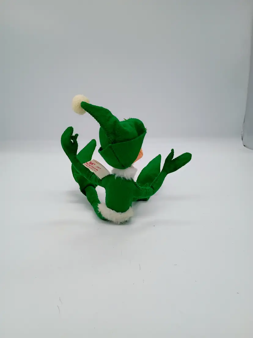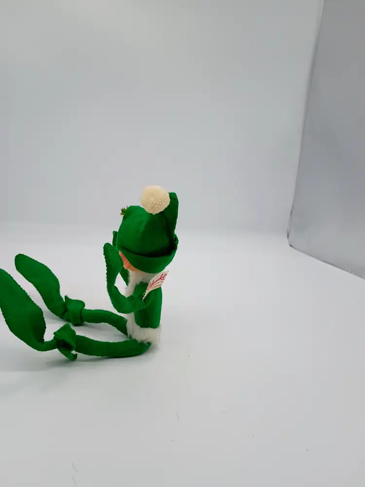 Vintage Annalee Christmas 1988 Green Elf with Fur Trim and Holly. The face is Mouth open O shape eyes open. This is 8 IN tall when standing all other dimensions depend on pose position Can free stand or sit. This is preowned . No rips tears fraying stains or odors. Has cloth tags. in Excellent Used Condition. Ships with arms and legs folded against body to reduce packing size. Ships USPS domestically and UPS/ USPS International Shipping Globally
