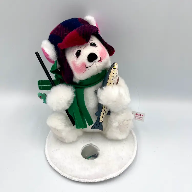 Vintage Annalee Winter Polar Bear Ice Fishing doll Catch of the Day 8” 2002