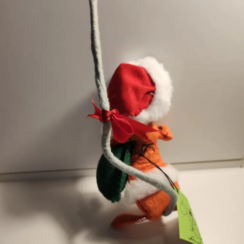 Posable with long tail His body is orange but I do not think it is from fading as his hat is still very red. Holly over ear