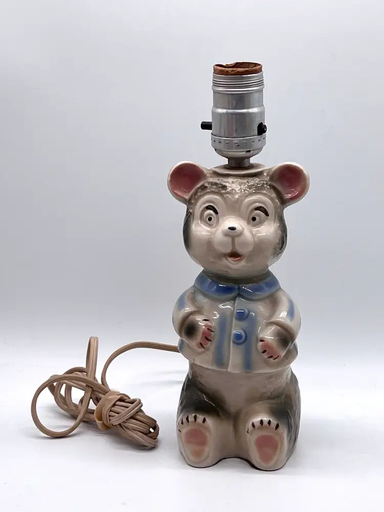Vintage Anthropomorphic Bear Ceramic Lamp 1959 Children’s Room