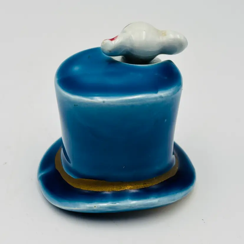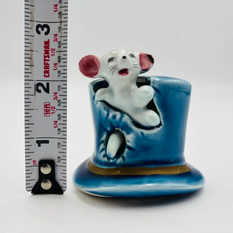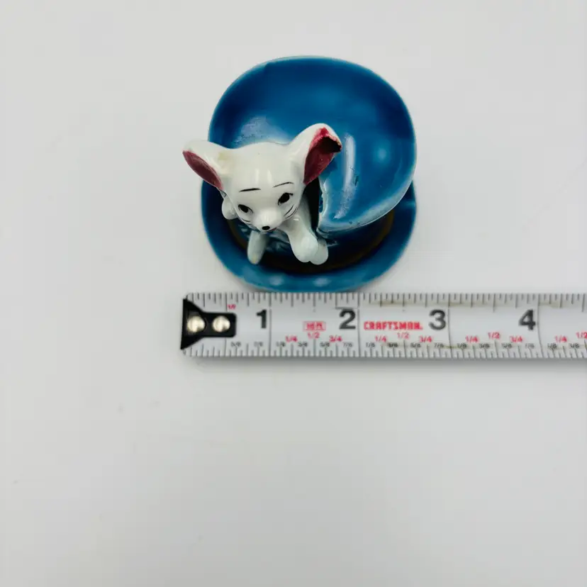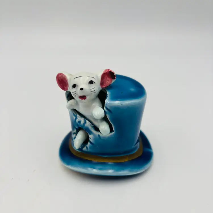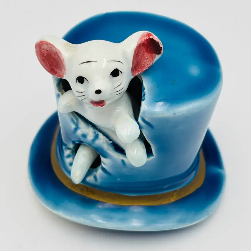 For sale is a Vintage Anthropomorphic Mouse in Blue Top Hat Ceramic Figurine Japanese Handpainted