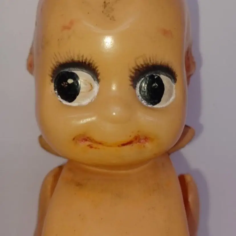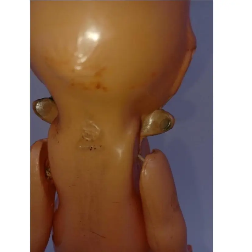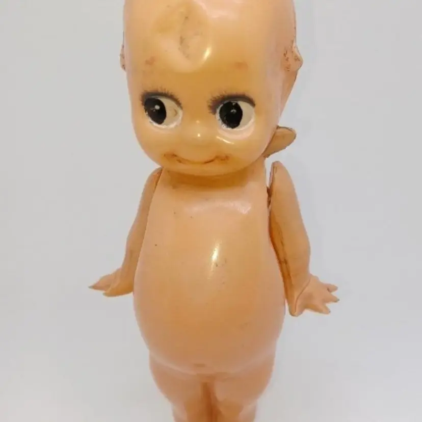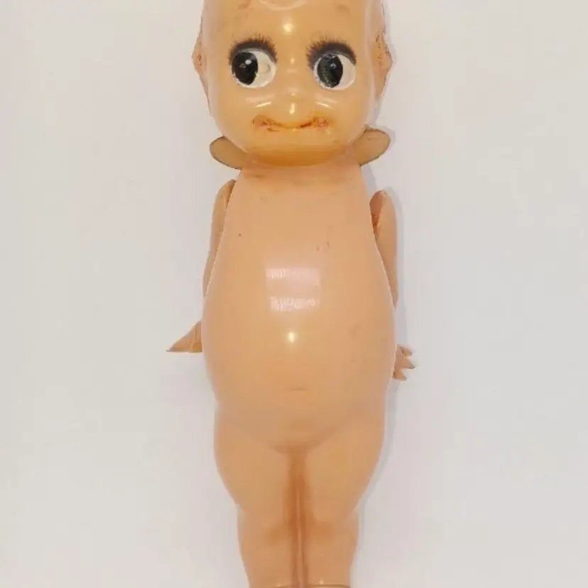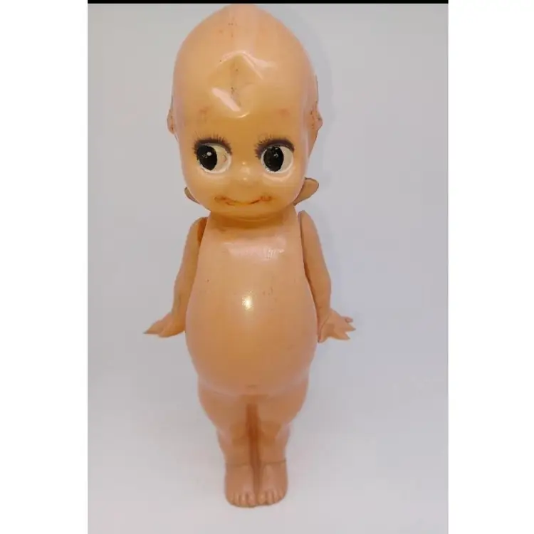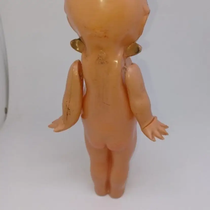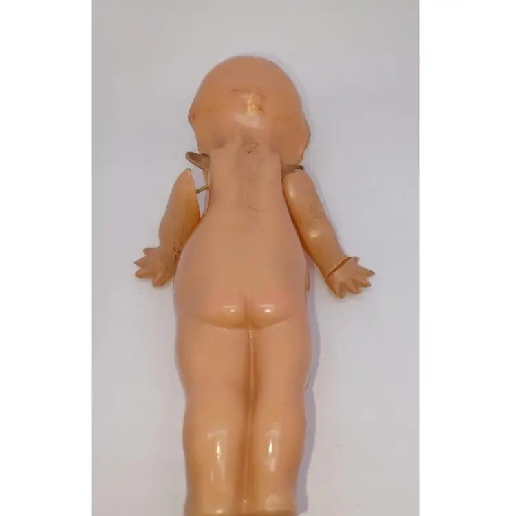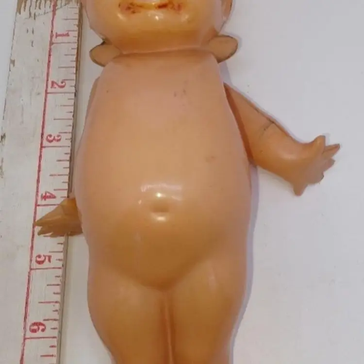 Antique Made In Nippon Celluloid Kewpie Doll Eyes looking sideways Little wings on back Circa 1920s measures approximately 7 in tall In good vintage condition he is a little bit dirty has just been surface wiped since I am not versed in cleaning celluloid. String to the arms is loose the socket on his left arm is a little bit cracked but the knot still holds Has dents on head please see all pictures as they're the best description all items from a smoke-free home with pets experienced fragile shipper
