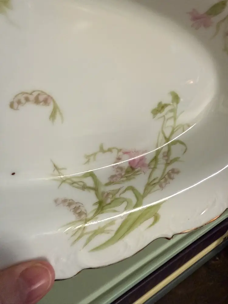 This item is a vintage maybe antique, porcelain relish or celery dish crafted in Bavaria.