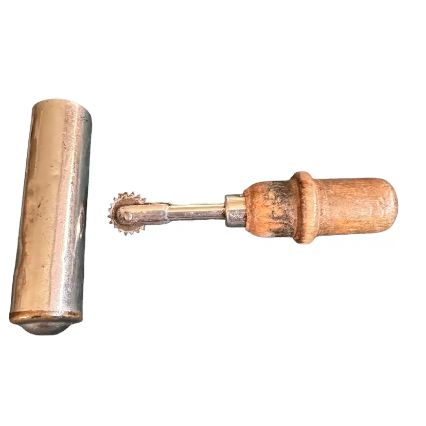 Vintage Antique Tracing Wheel Tool with Wood Handle and Cap