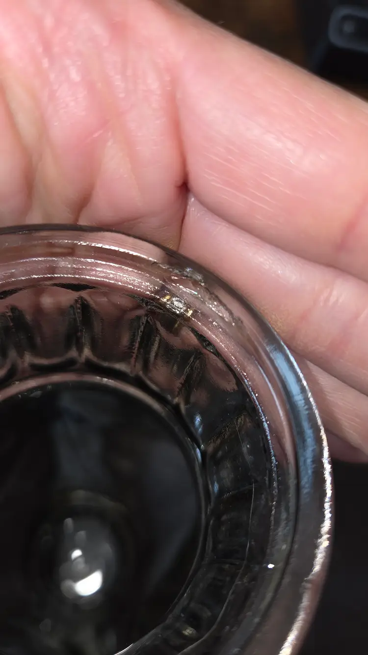 Small chips on interior lip not easily seen with lid on and is not on the outside.