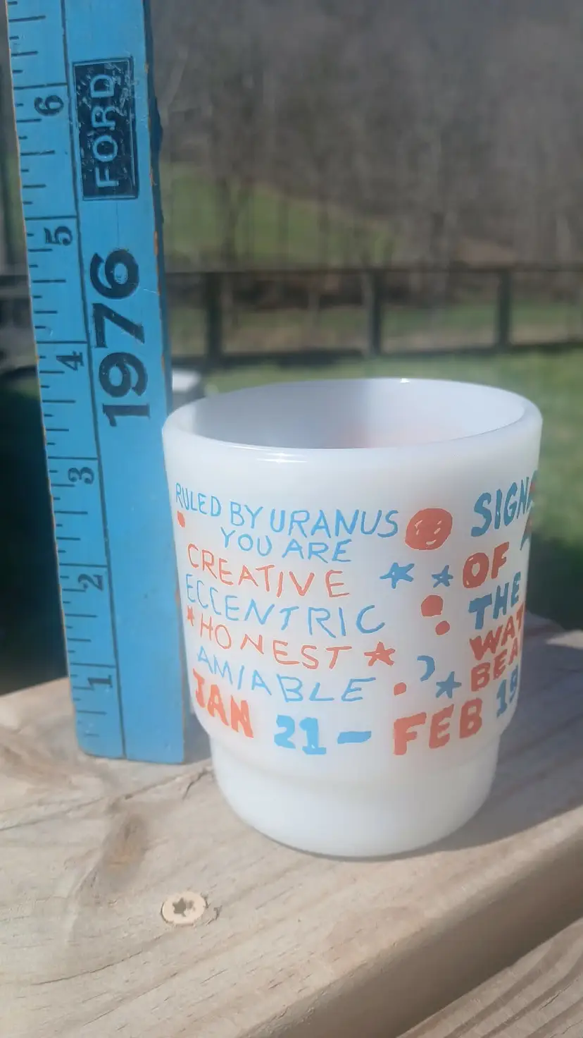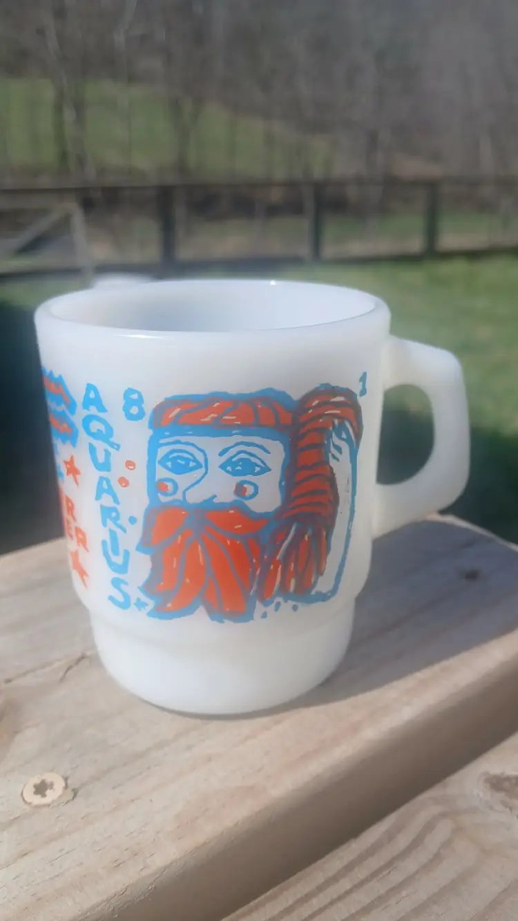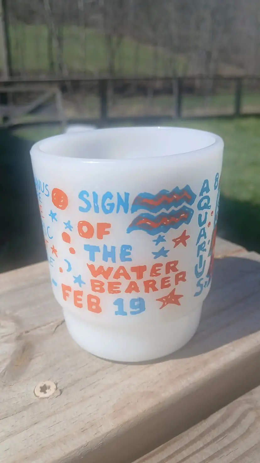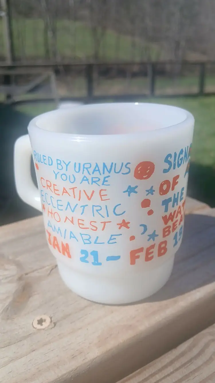 Check out this quirky vintage Aquarius zodiac mug! Perfect for astrology lovers. Minor wear as shown. A fun addition to your mug collection!