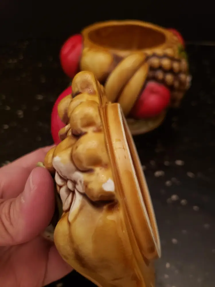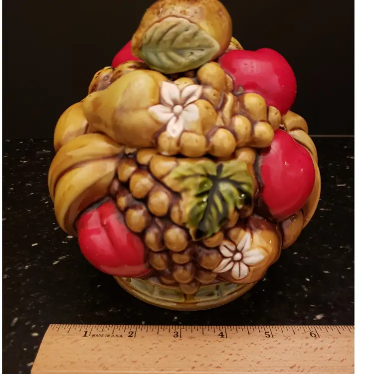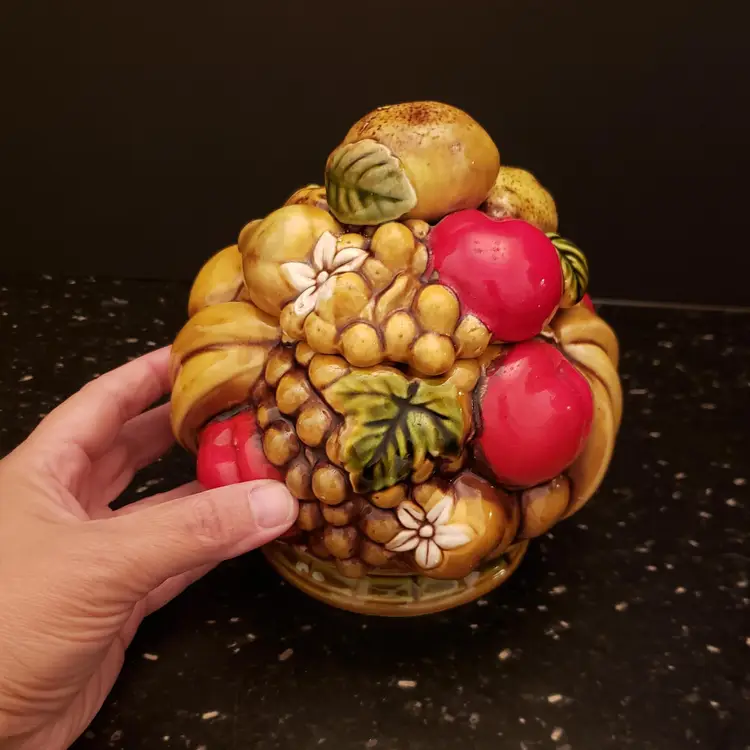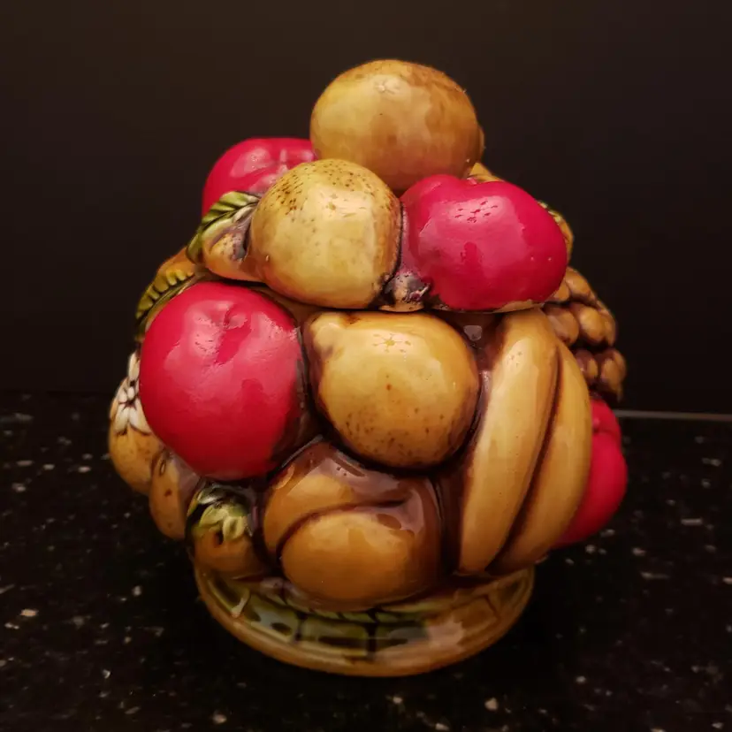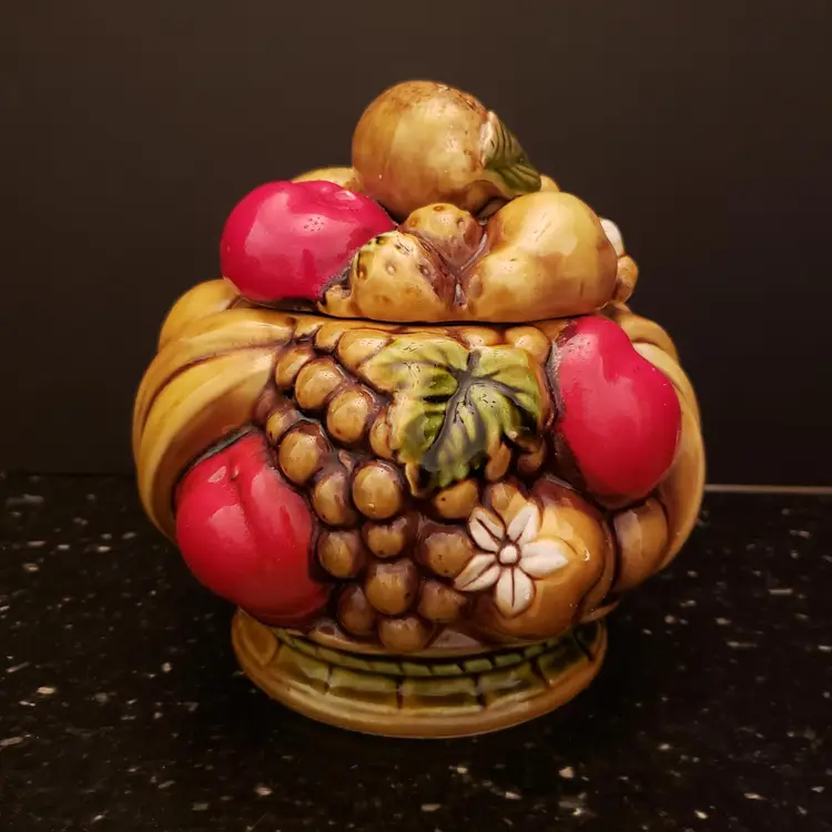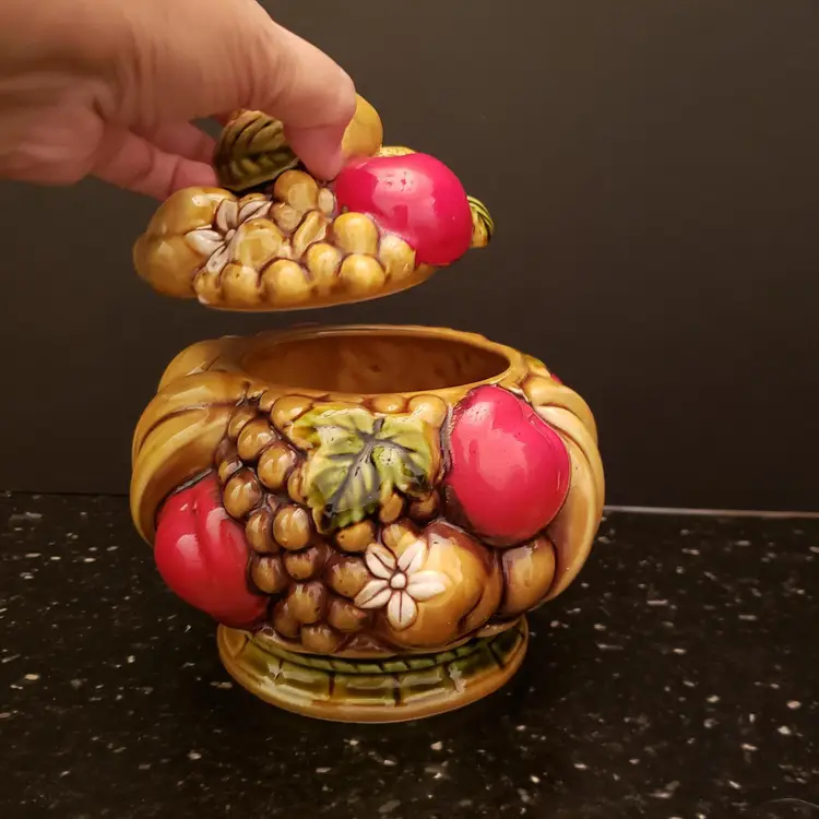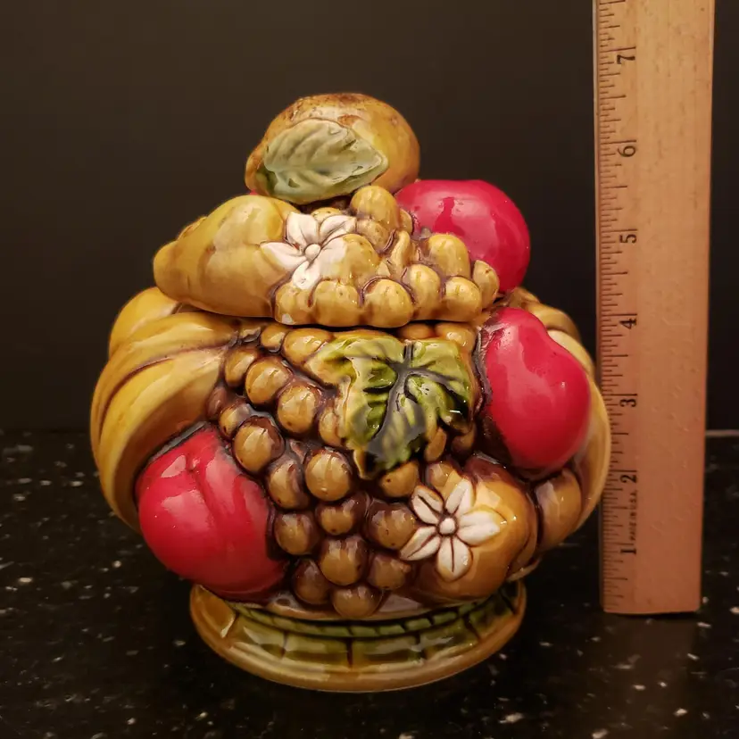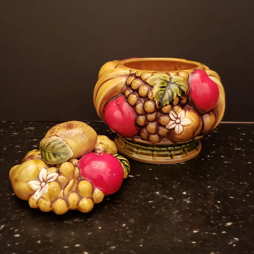Ardco Ceramic Harvest Fruit Cookie Biscuit Jar Lidded Bowl Vintage Retro