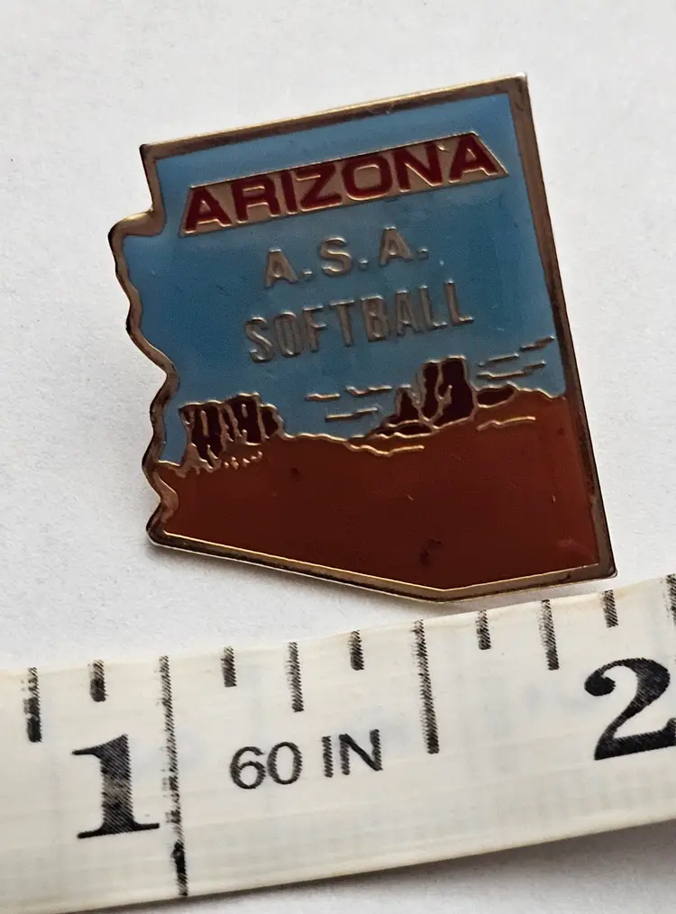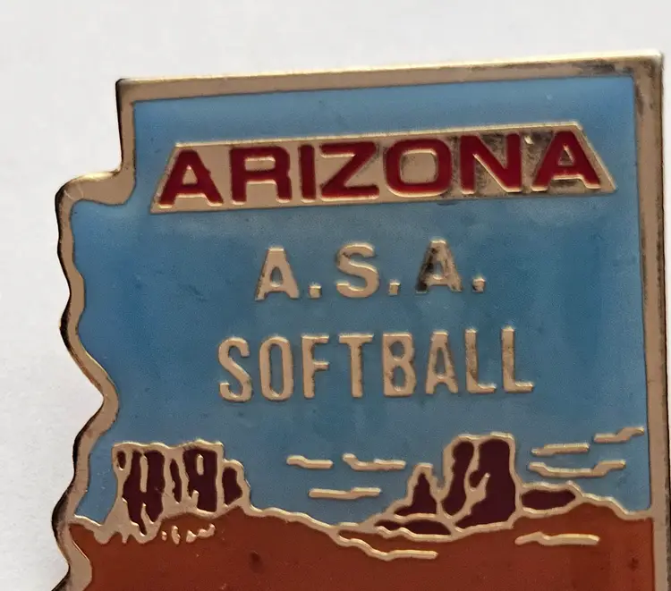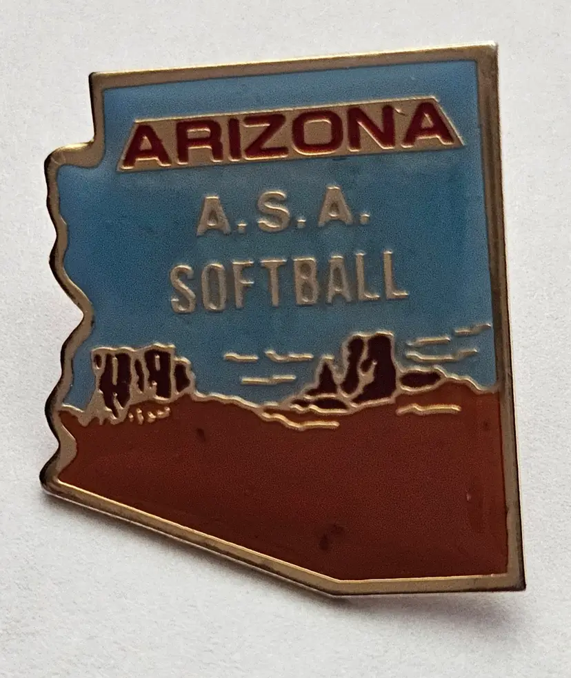 The Vintage "Arizona" ASA Softball Lapel Pin is a nostalgic collector's item that pays homage to the sport of softball. This pin features the Arizona region and is a specific piece for lapels or bags, perfect for showcasing your love for the game. Made with quality in mind, this pin is a unique addition to any sports memorabilia collection.