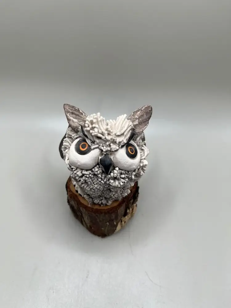 This one of a kind vintage sculpture is a charming collectible made of clay. It's unique design and artful craftsmanship make it a valuable addition to any collection. Whether you are a collector or just appreciate the beauty of unique art, this owl sculpture is sure to impress. Measures 3.5 inches tall