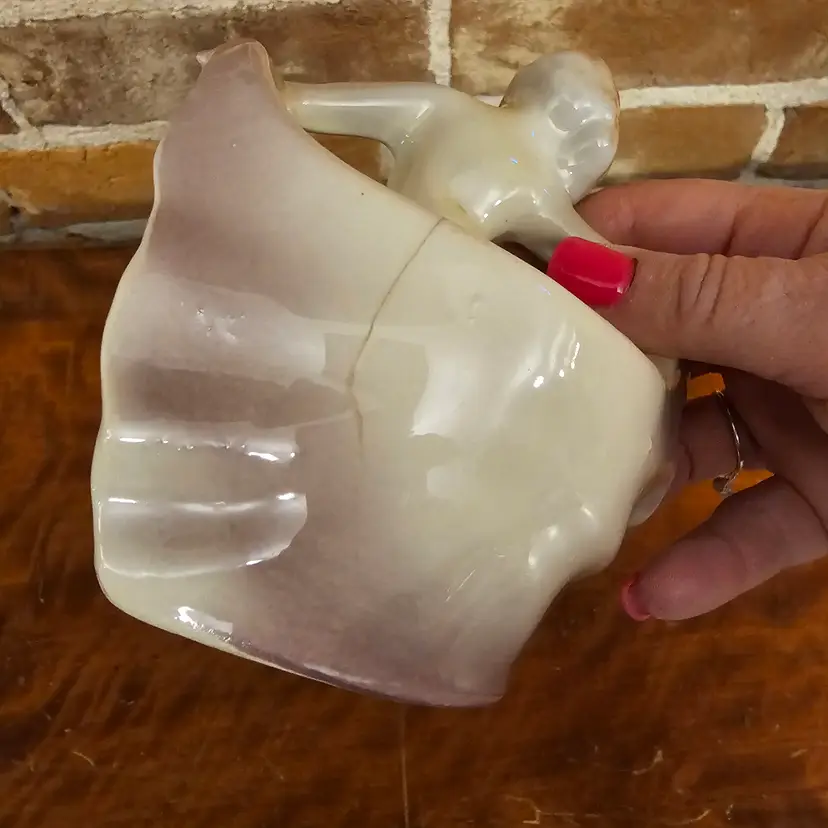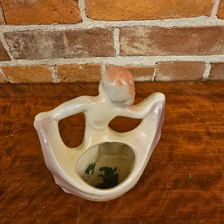 5" tall. PLEASE READ: Hairline crack on back of planter. See photos.