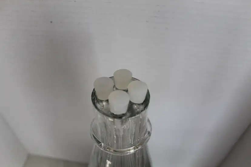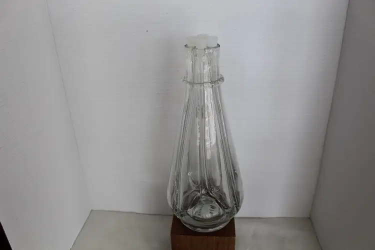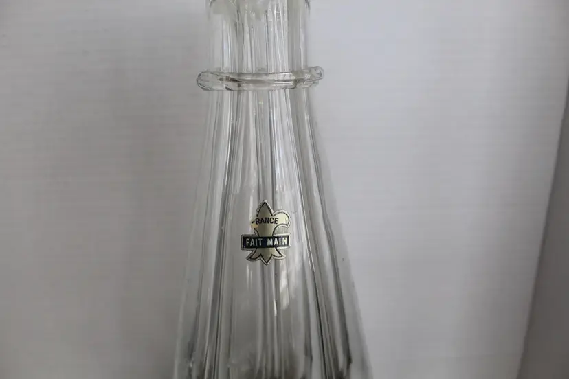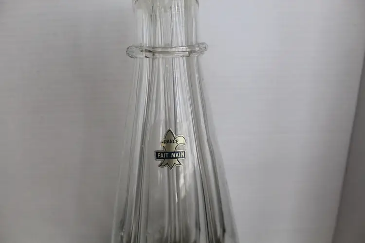 This vintage Art Deco French decanter is a unique piece with four chambers and stoppers, perfect for all occasions. Made of clear glass in an intricate round shape, this decanter exudes a classic Art Deco style. Crafted by Fait Main in France, this pre-1970 original piece showcases elegant design and craftsmanship. Original sticker still on piece. One additional decorative stopper included. Base is 3 3/8 inches in diameter. Widest diameter for the bottle is 4 1/4 inches. Hand wash only to maintain its timeless beauty, this collectible decanter is sure to add a touch of sophistication to any barware collection. No chips or cracks. Comes from a smoke free home. Check out my other vintage finds as I gladly combine shipping.