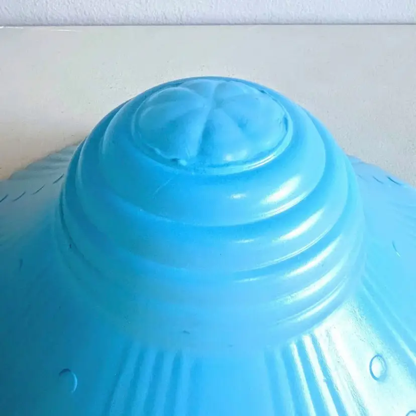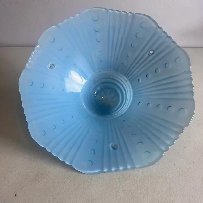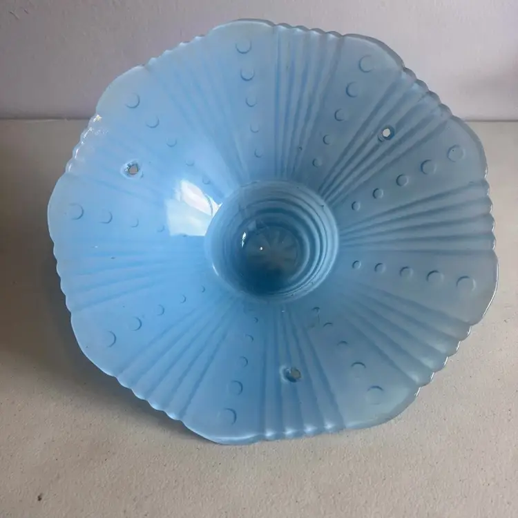 Here We Have a Vintage Art Deco Glass Ceiling Light Lamp Shade Bubbles and Fan Robins Egg Blue