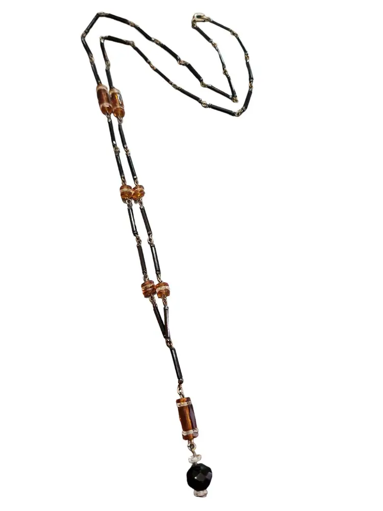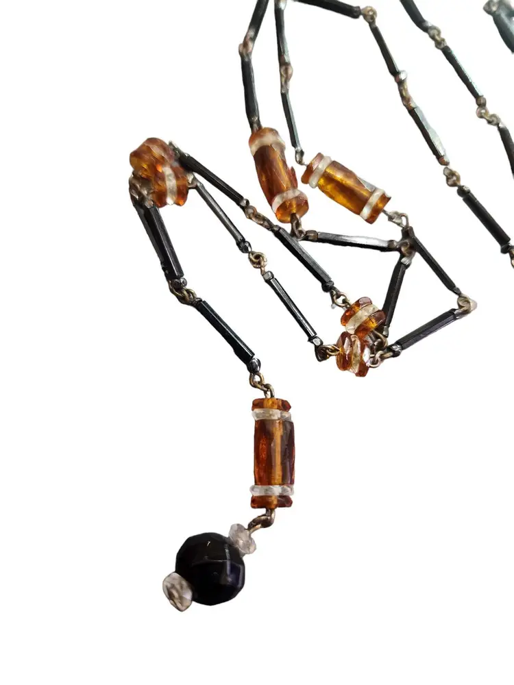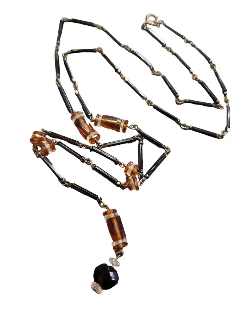 Vintage Art Deco Glass & Crystal Necklace (A4410)