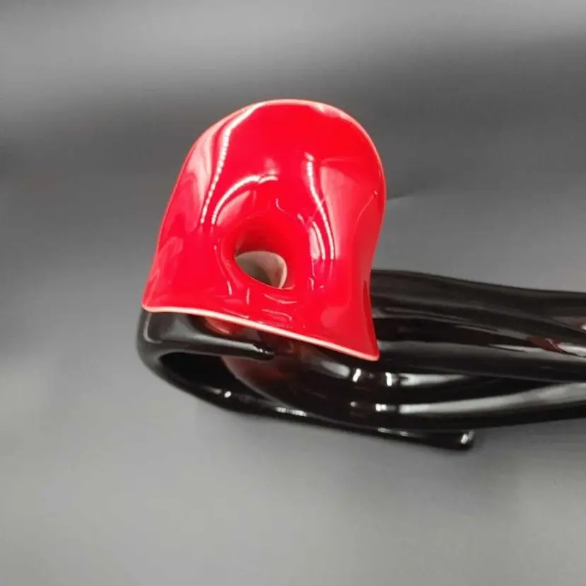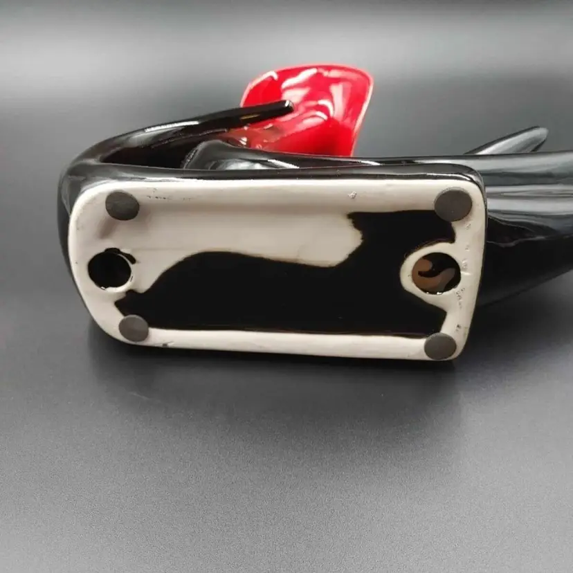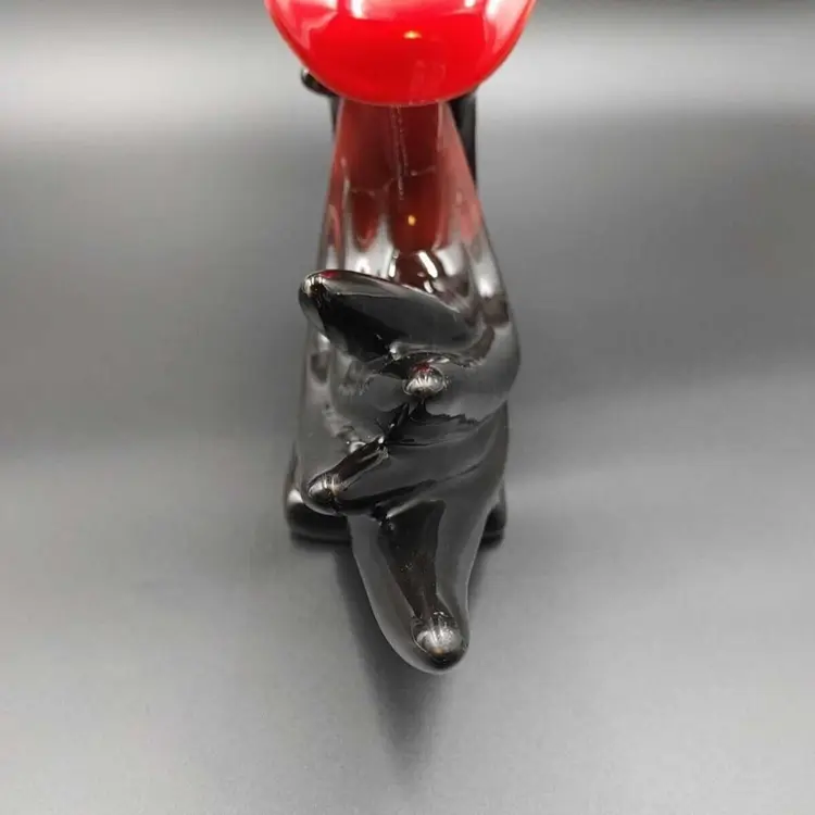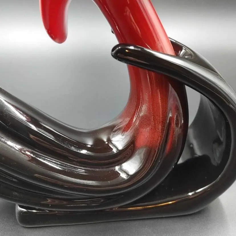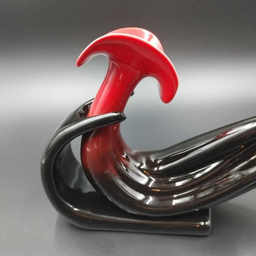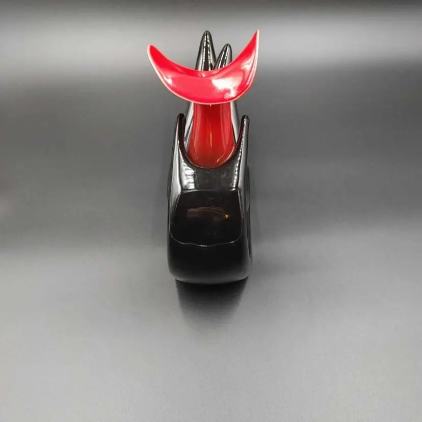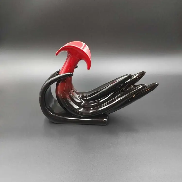 Fabulous Art Deco Vase in the form of a Rooster/Bird. Red And Black from the 1980s. Retro. Measures approx. 12" long by 8.25" tall at the largest areas. In Very Good condition with no chips, cracks or breaks.