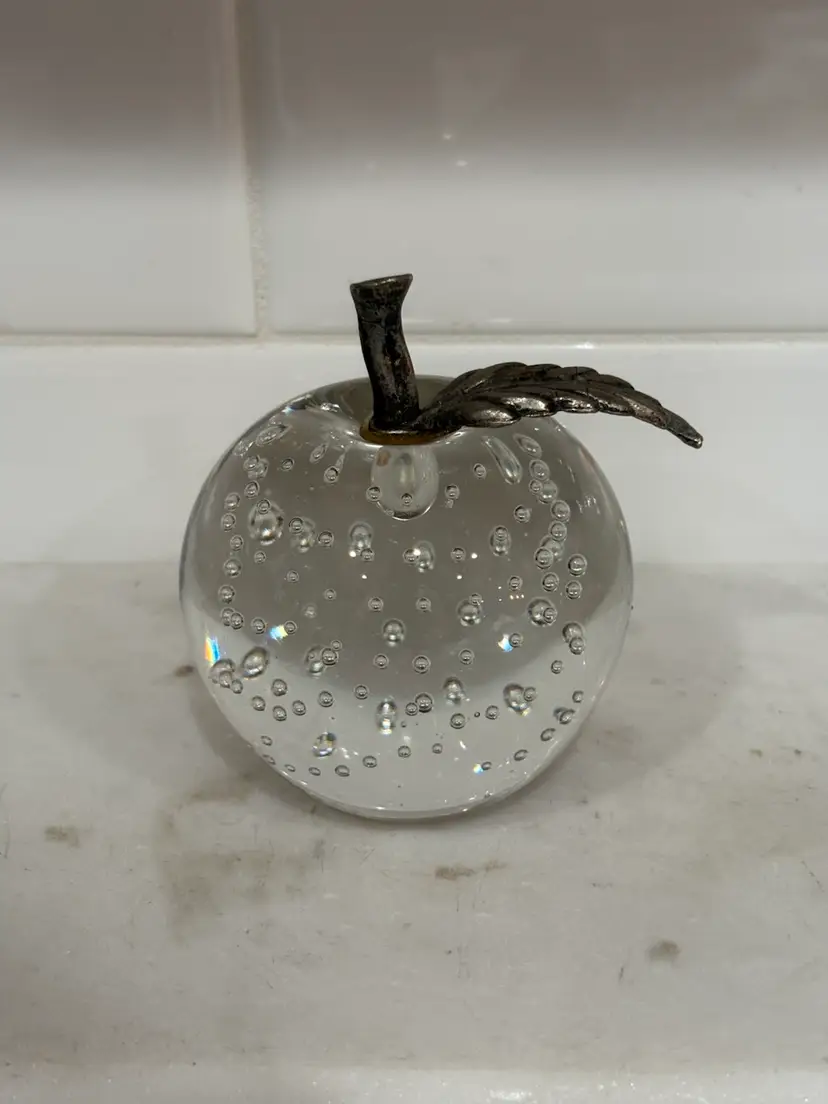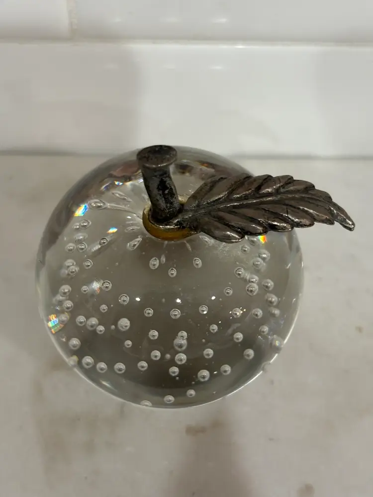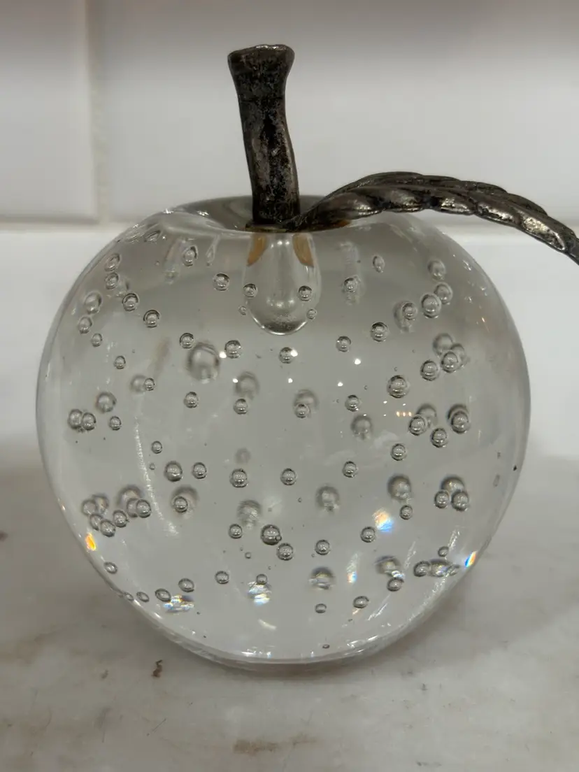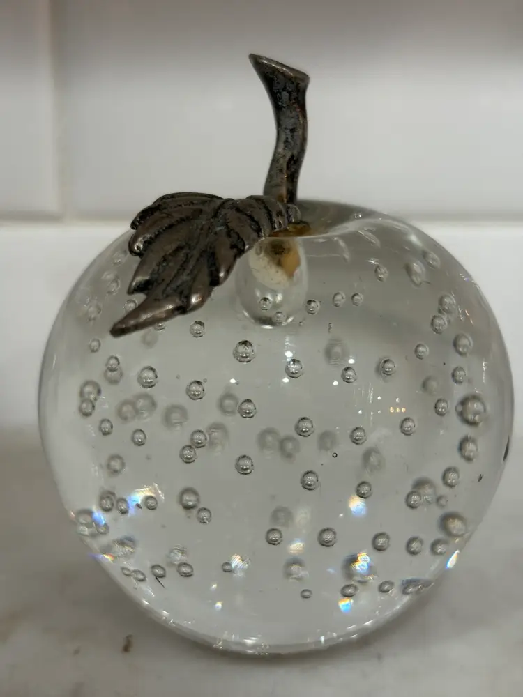 Vintage Art Glass Apple W/stem Paperweight Bookend Controlled Bubbles