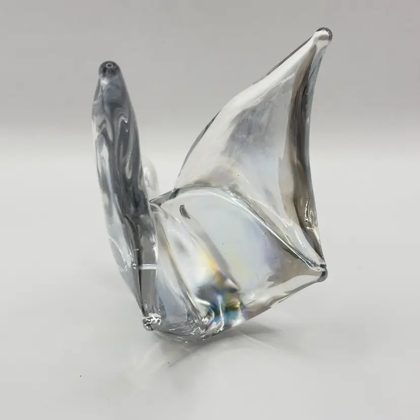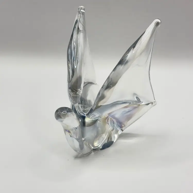 This beautiful vintage art glass butterfly figurine captures the grace and elegance of a butterfly in flight. Crafted from clear crystal, it adds a touch of sophistication to any decor. Perfect for collectors or as a unique gift. Excellent condition with no chips or cracks. Measures 4.5 inches. Weighs 1lb.