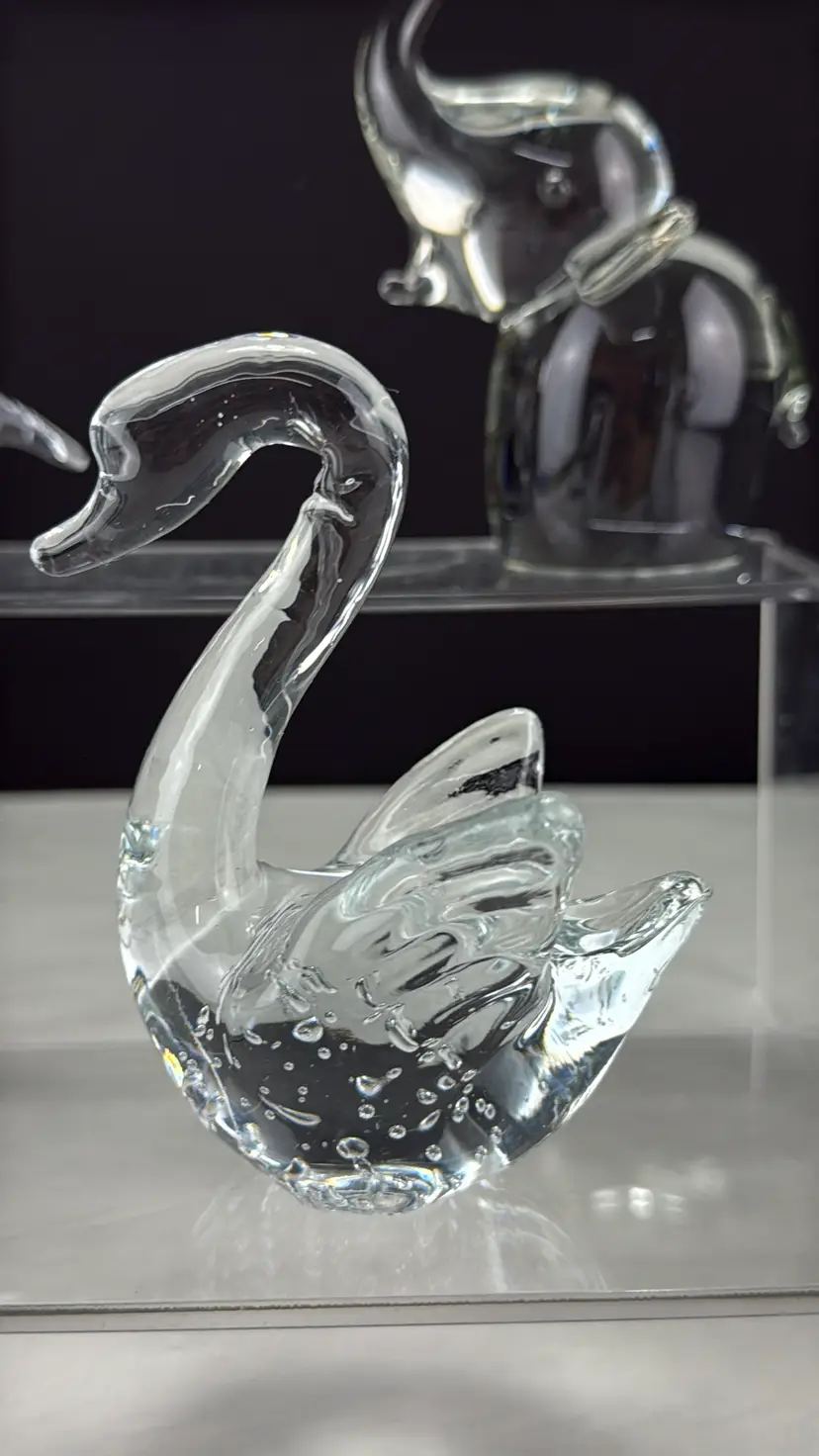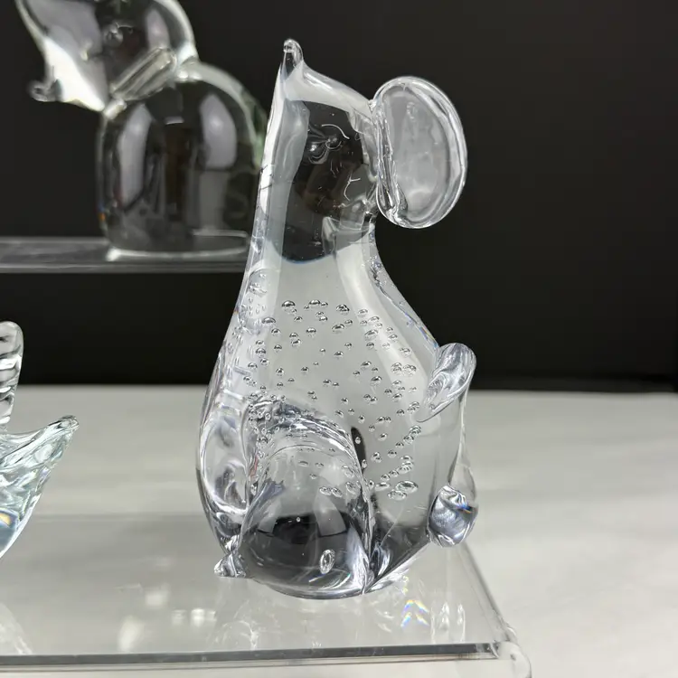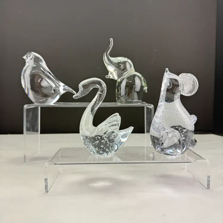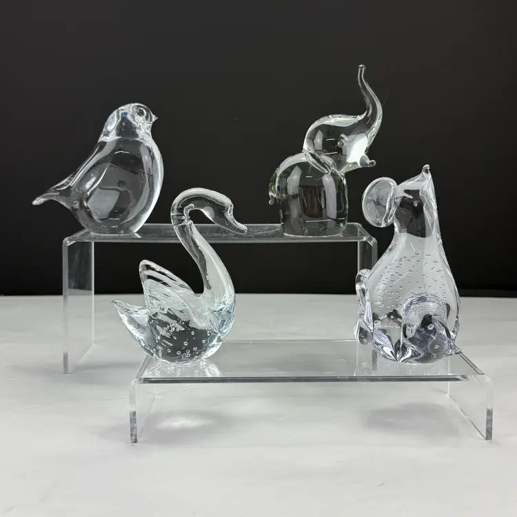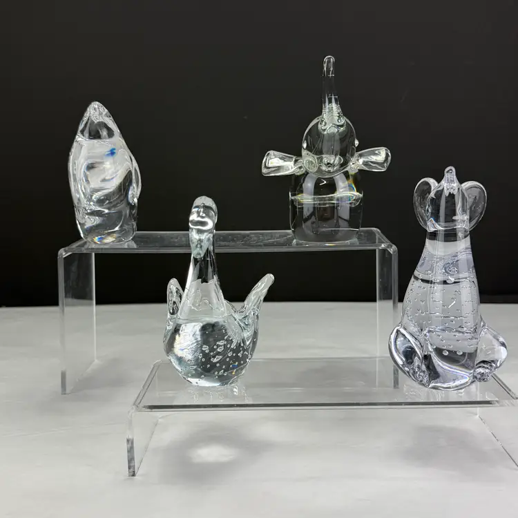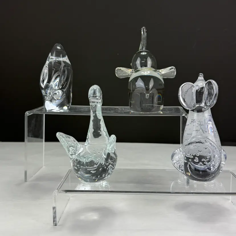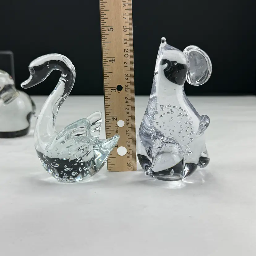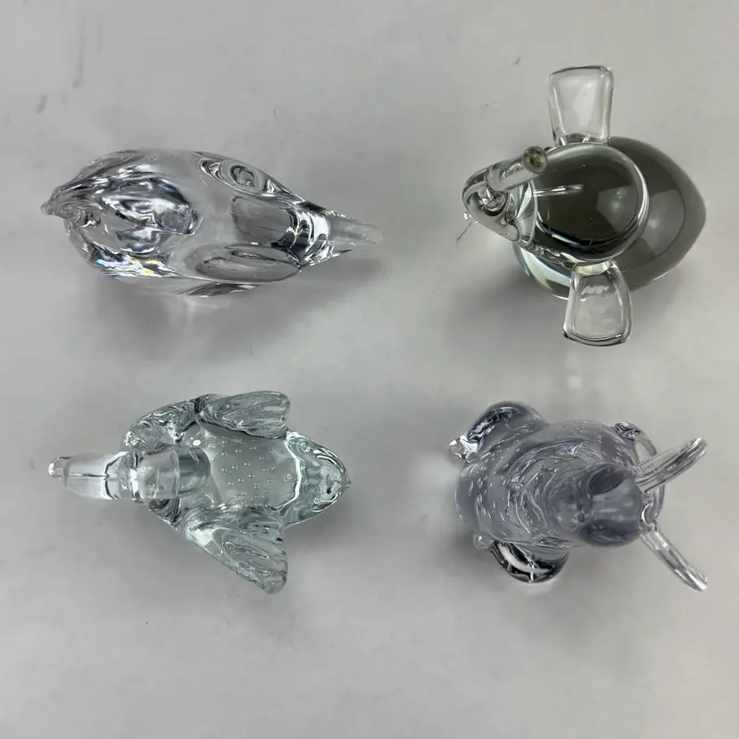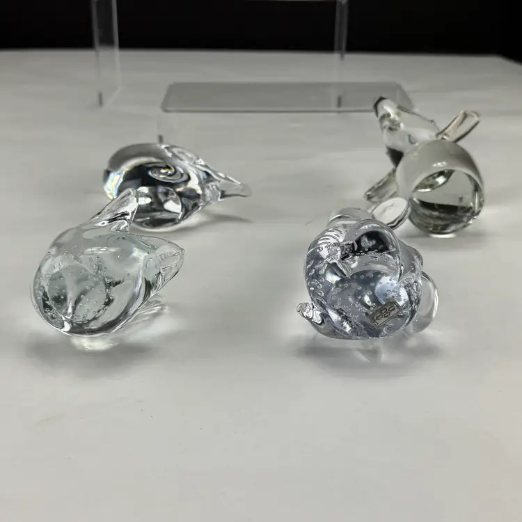 Vintage Art Glass Clear Animal Paperweights Lot of 4