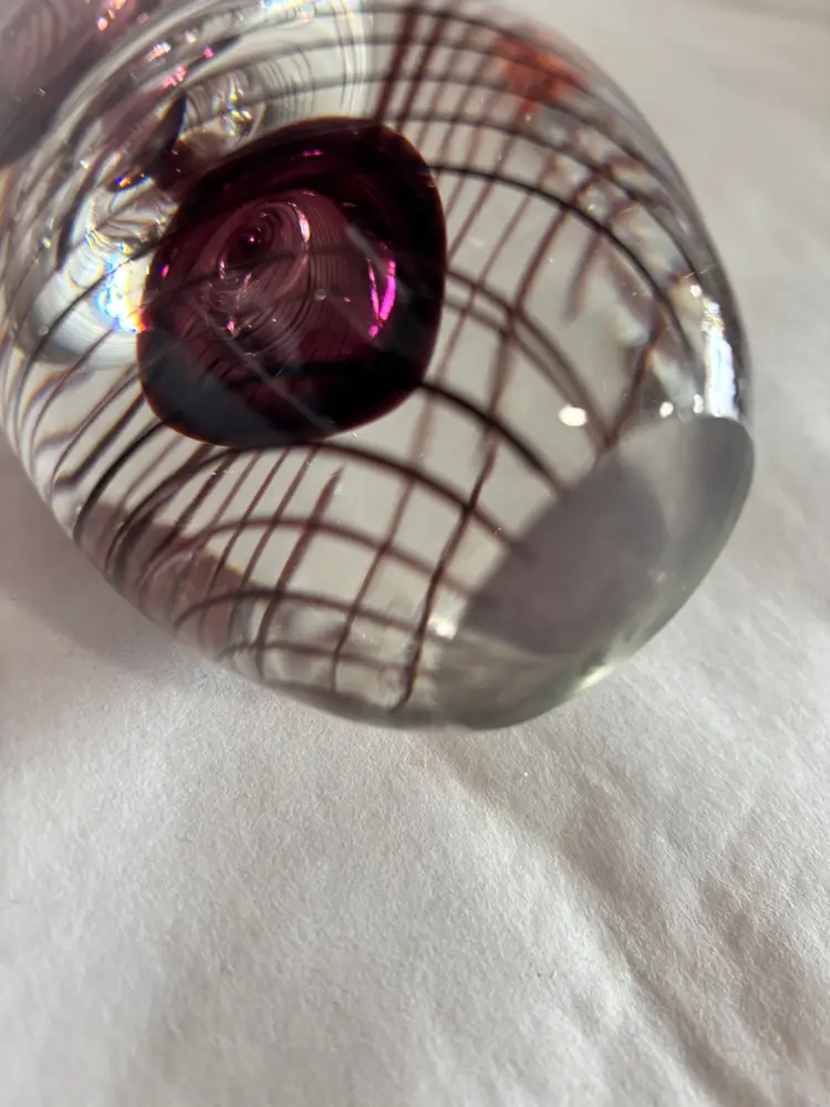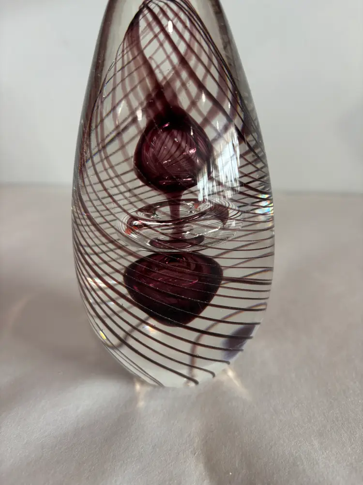 Vintage Art glass Egg paperweight that has a spiral purple color that is unbelievable. This has no damages and is 6 1/2 x 3