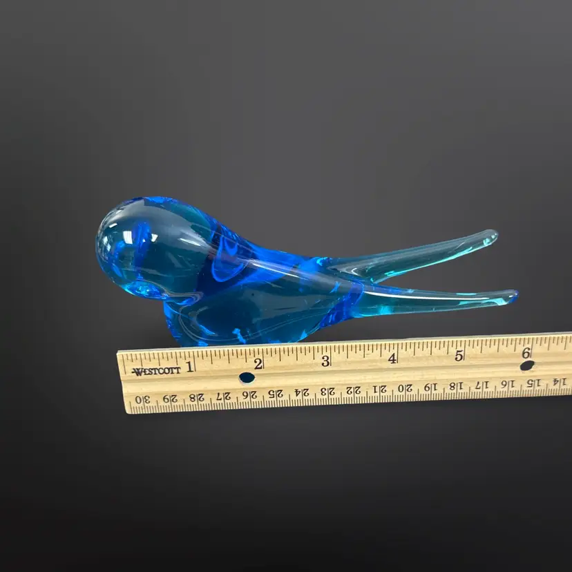 Beautiful vintage Swedish art glass blue long tail swallow paperweight/figurine. Great condition; no chips or cracks. Measures approximately 6” L x 3” H