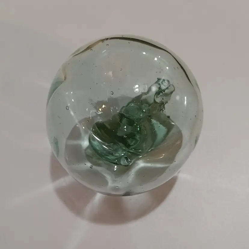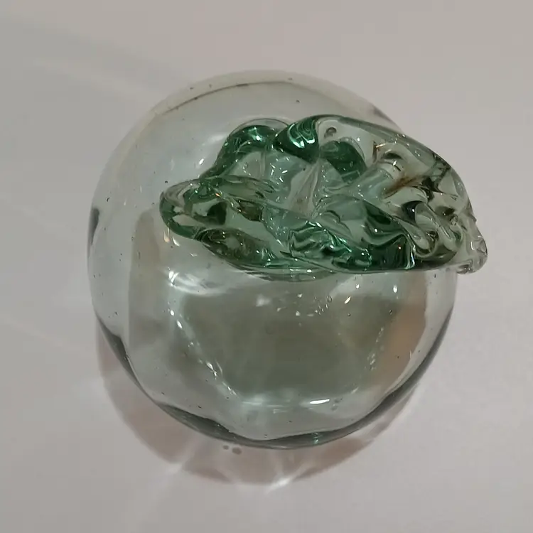 Art glass green apple paperweight; 3 in by 3 in. No chips or cracks