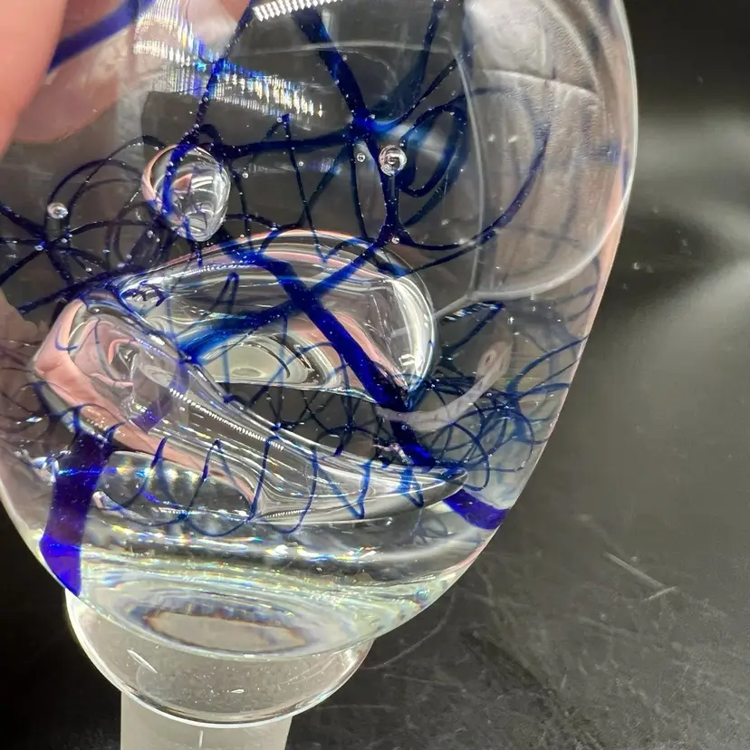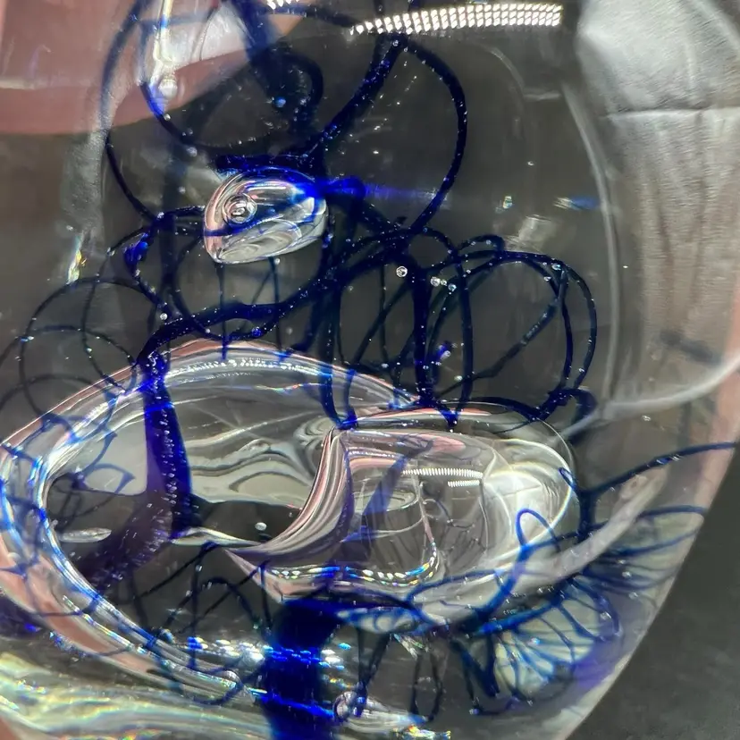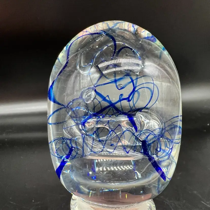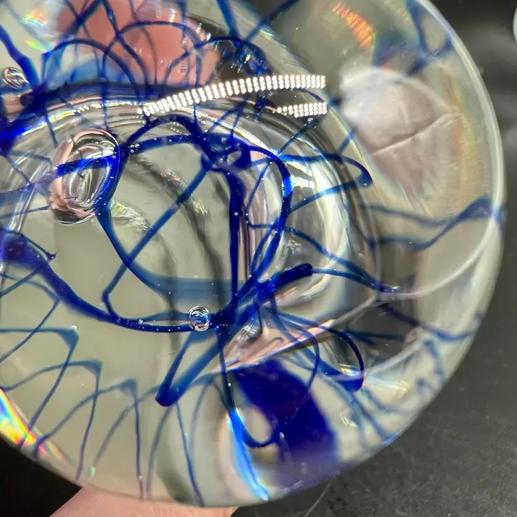 This vintage art glass bottle stopper is a beautiful addition to any bar or kitchen. The heavy design ensures it can handle even the toughest bottles, while the clear blue swirl adds a touch of elegance to any decor. Made from high-quality glass materials, this bottle stopper is both durable and washable, making it a practical choice for everyday use. Whether you're a collector or just looking for a unique piece to add to your home, this bottle stopper is sure to impress.