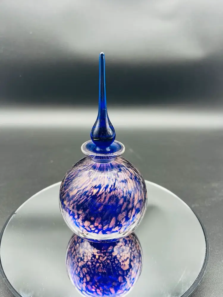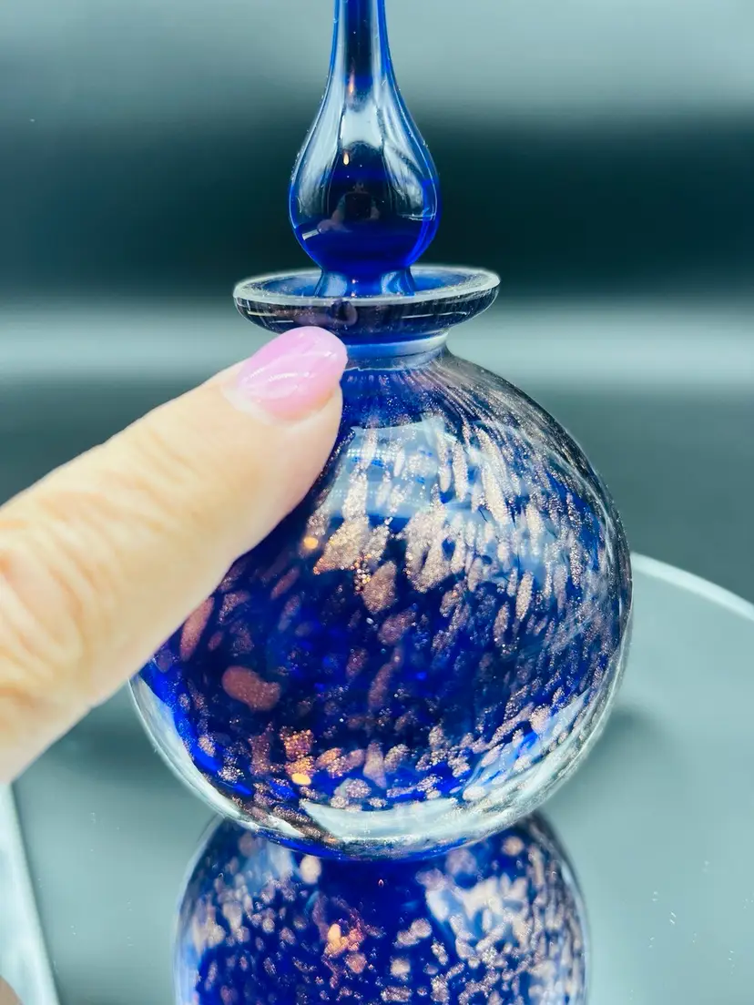 Vintage Art Glass Perfume Bottle Cobalt Blue Copper Fleck Design ThroughoutVintage Art Glass Perfume Bottle Cobalt Blue Copper Fleck Design Throughout 1 small chip on rim. See pic