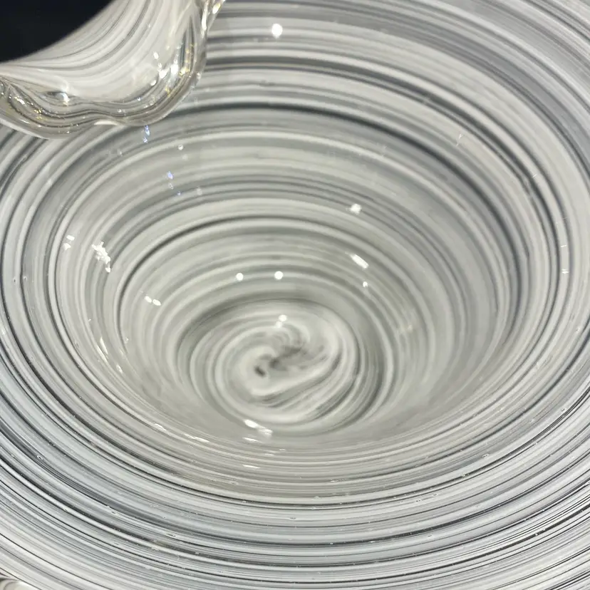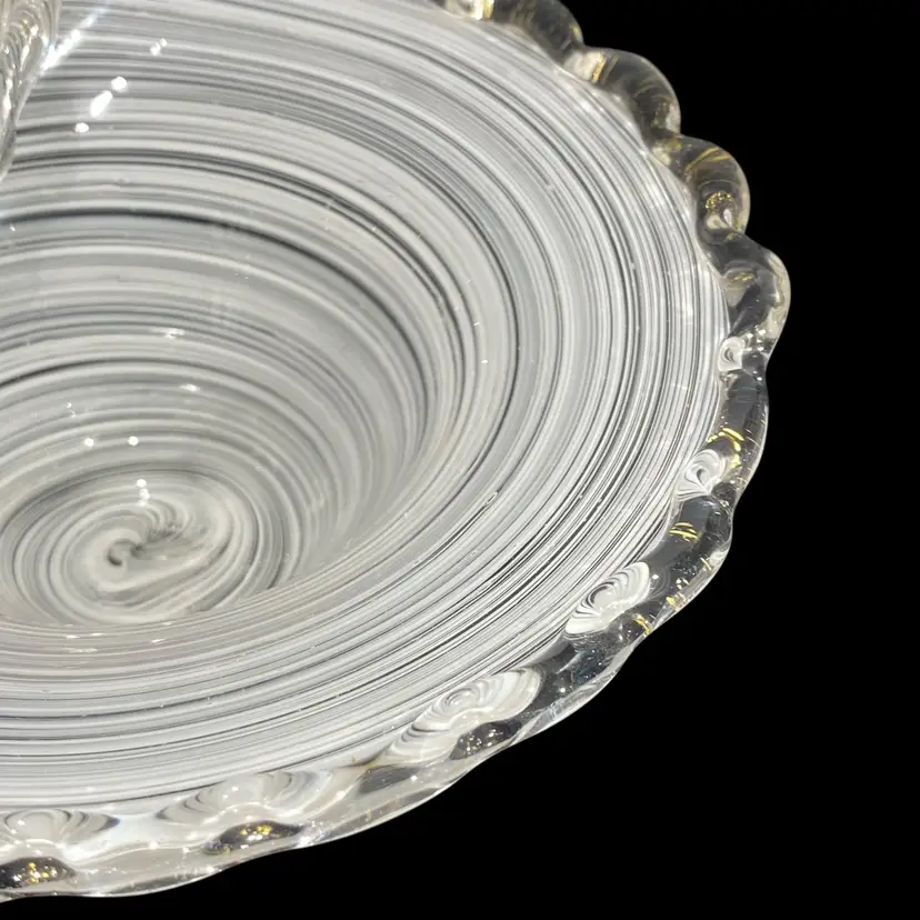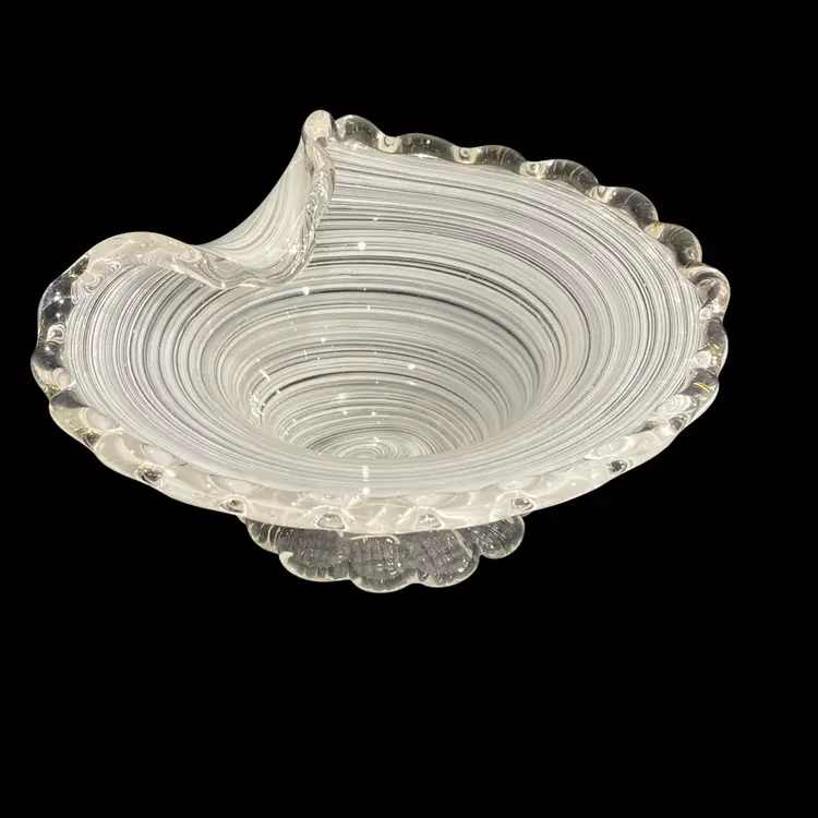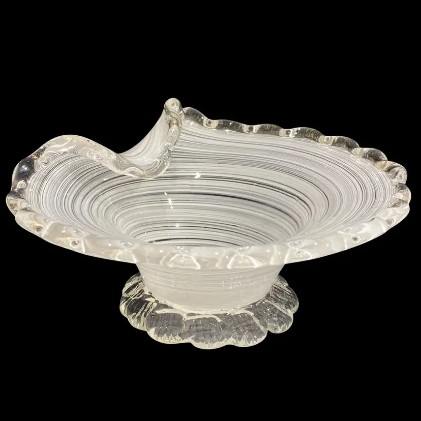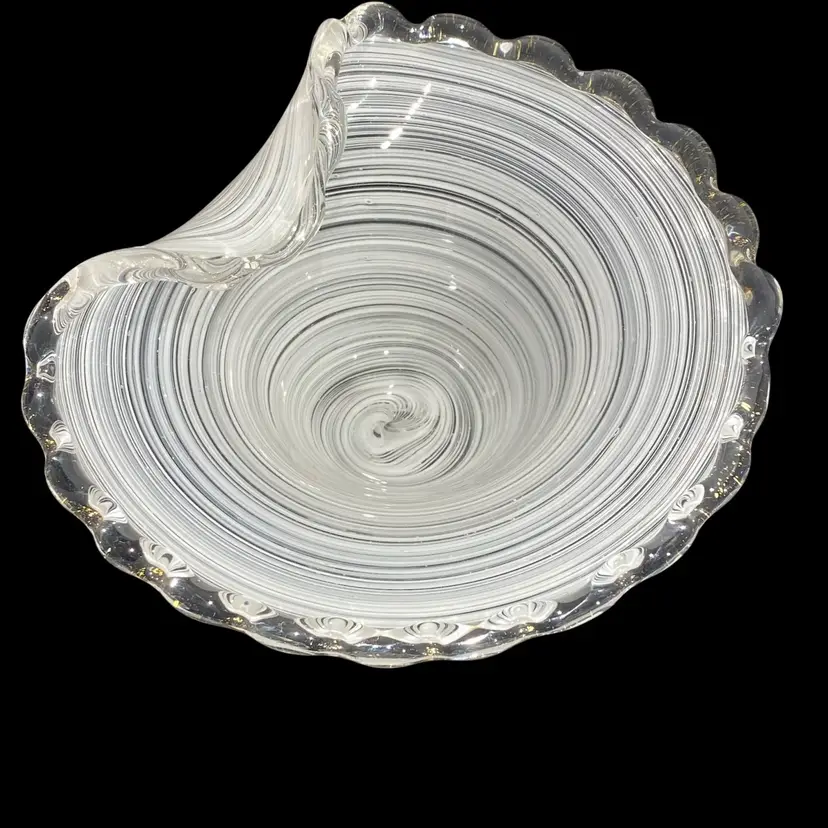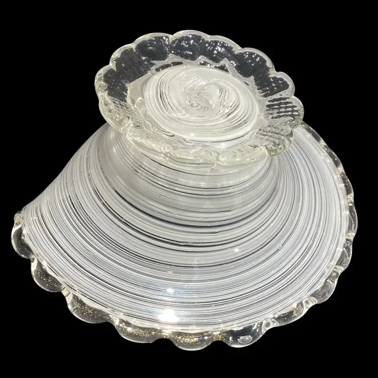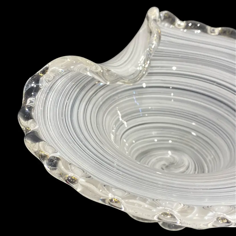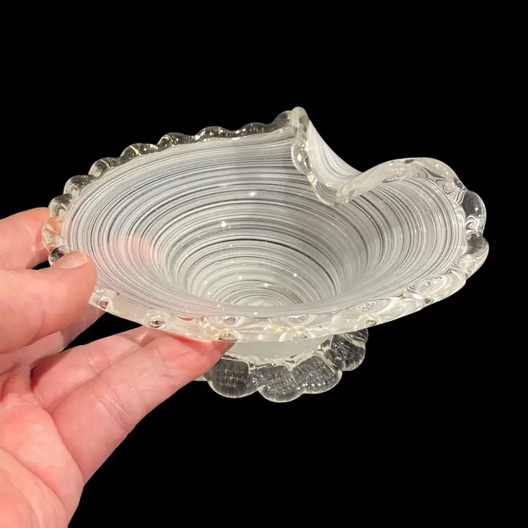 Vintage Art Glass White Swirl Bowl With Gold Flecks 3” T X 6” W Used pre owned. No chips or cracks. Thanks and enjoy…