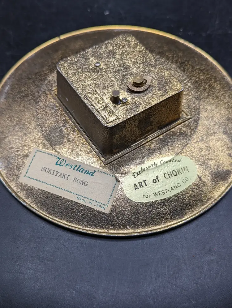 This is a very nice Vintage Art of Chokin Music Box Bird Design Plays Sukiyaki Song. It does still play. Please see all pictures for condition and measurements.