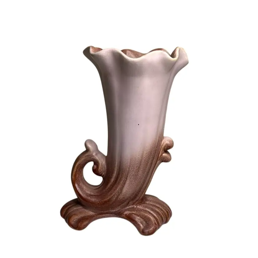 Vintage Art Pottery Vase Weller Lido? Cornucopia Vase Blush Pink Plum.