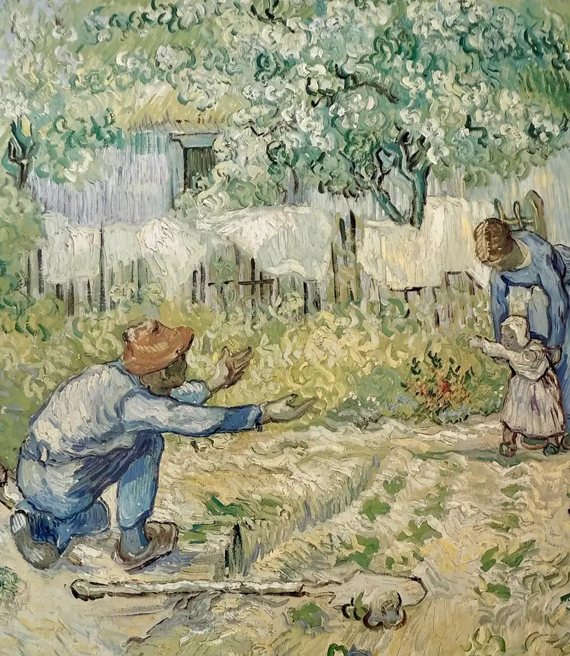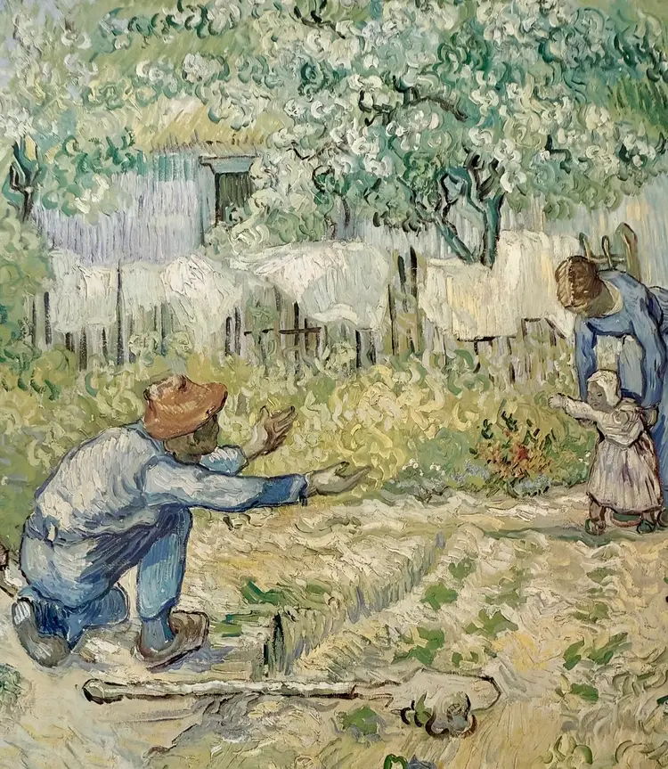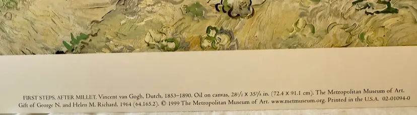 FIRST STEPS, AFTER MILLET: Vincent van Gogh, Dutch, 1853-1890. Oil on canvas, 28½ X 35% in. (72.4 X 91.1 cm), The Metropolitan Museum of Art. Measures 14 x 11 Will be shipped in a mailing tube 1999 The Metropolitan Museum of Art. www.metmuscum.org. Printed in the U.S.A.