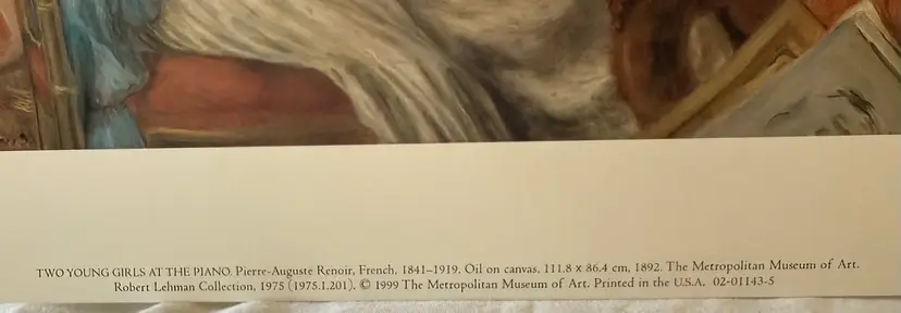 TWO YOUNG GIRLS AT THE PIANO, Pierre-Auguste Renoir, French, 1841-1919. Oil on canvas, 111.8 x 86.4 cm, 1892. The Metropolitan Museum of Art. Robert Lehman Collection, 1975 (1975.1.201). © 1999 The Metropolitan Museum of Art. Printed in the U.S.A. 02-01143-5
