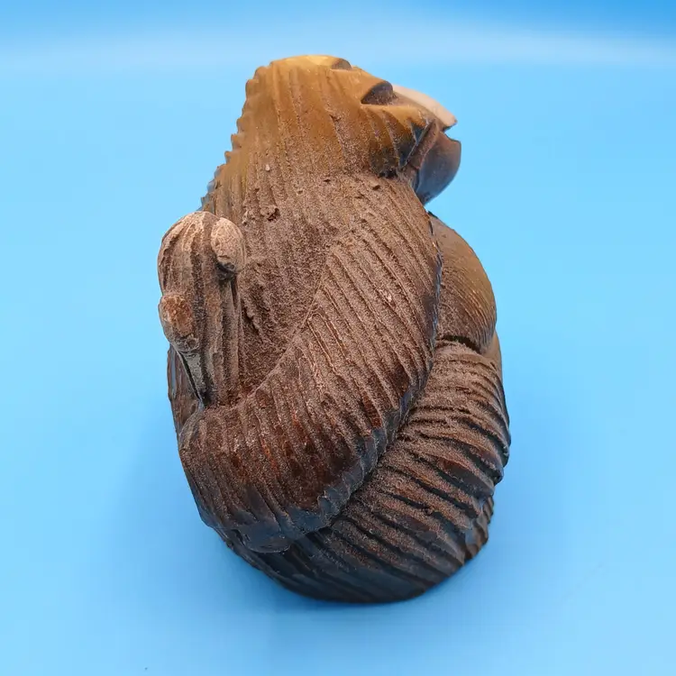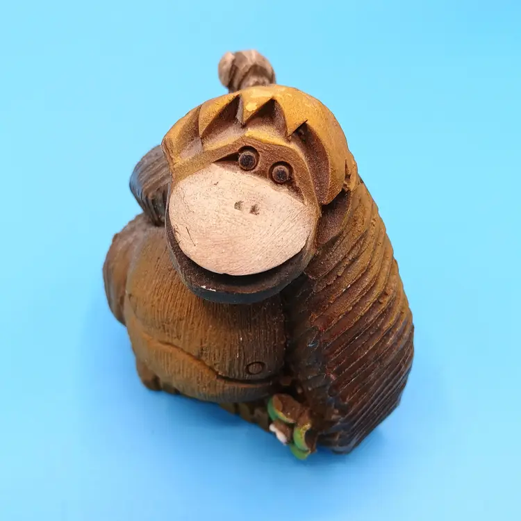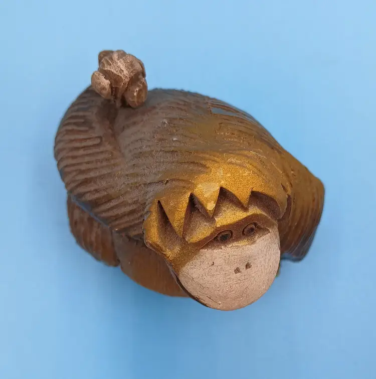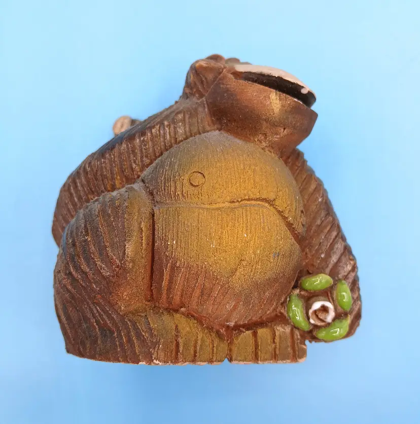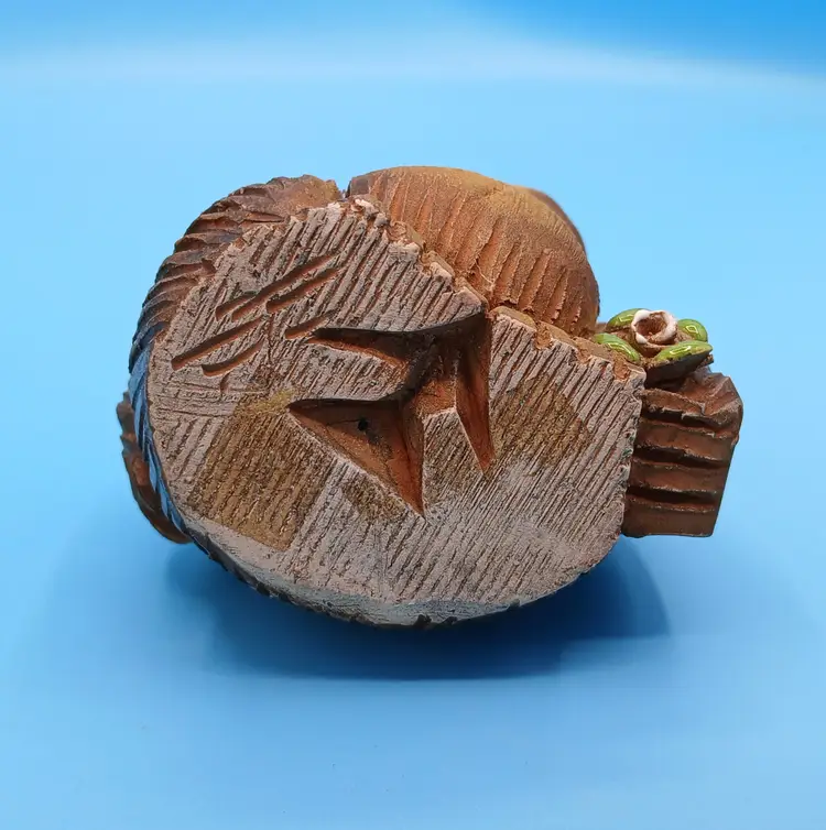 Some fleabites, barely perceptable on this figurine, handmade in Uruguay. Please observe photos closely. There is some wear here and there. This guy intends to lure you in with a pretty flower but he's holding a surprise behind his back! Beautiful earth tones and a whimsical expression. Thanks for looking!
