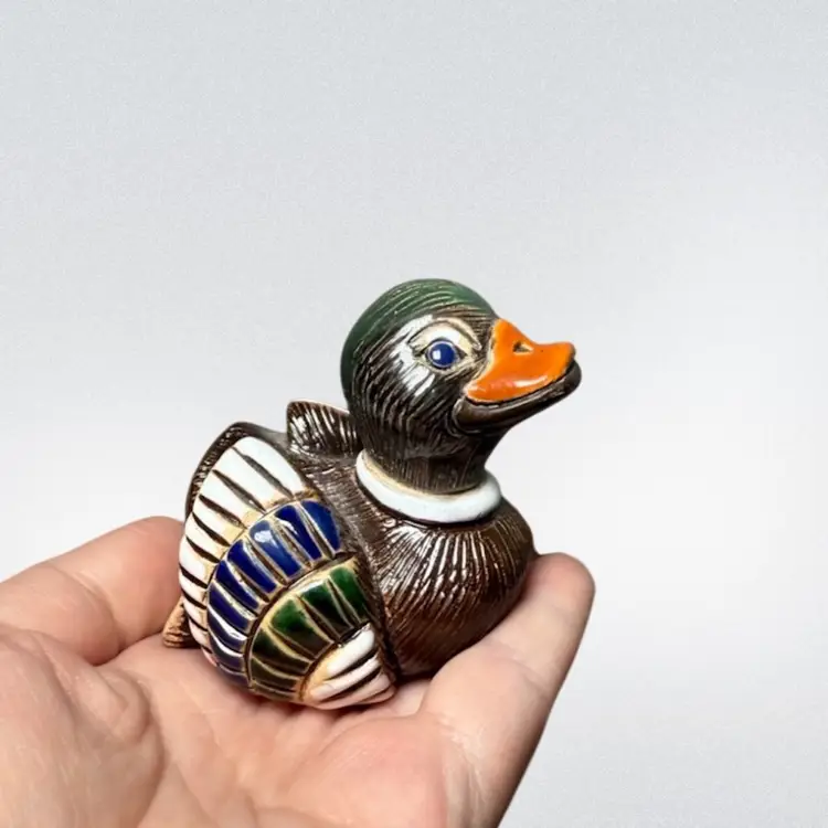 Vintage Artesania Rinconada duck sculpture. It is in good vintage condition, no chips or quacks (cracks). It is approximately 2.5in tall.
