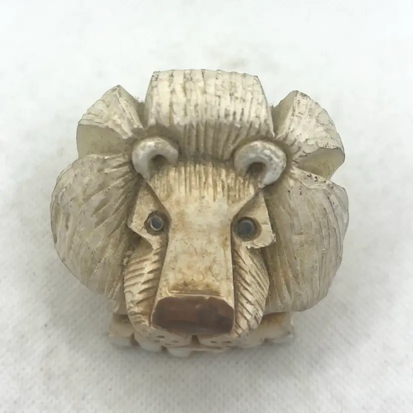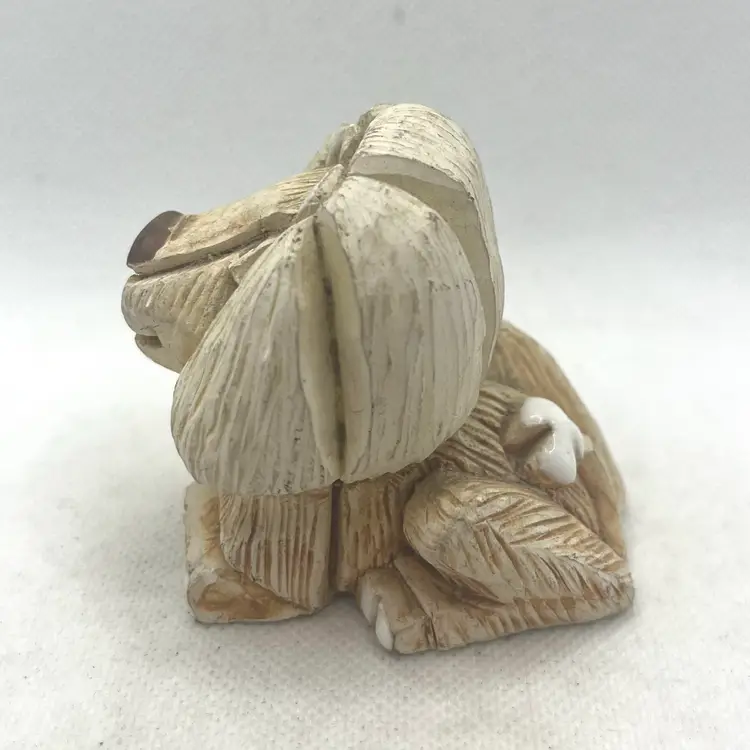 This item is a hand-carved Artesania Rinconada lion figurine. These vintage sculptures are highly collectible and were famously hand-crafted in Uruguay by artists Jorge and Jesus Carbajales. Part of the "Classic Collection," featuring a stylized, textured mane and characteristic small, expressive eyes.