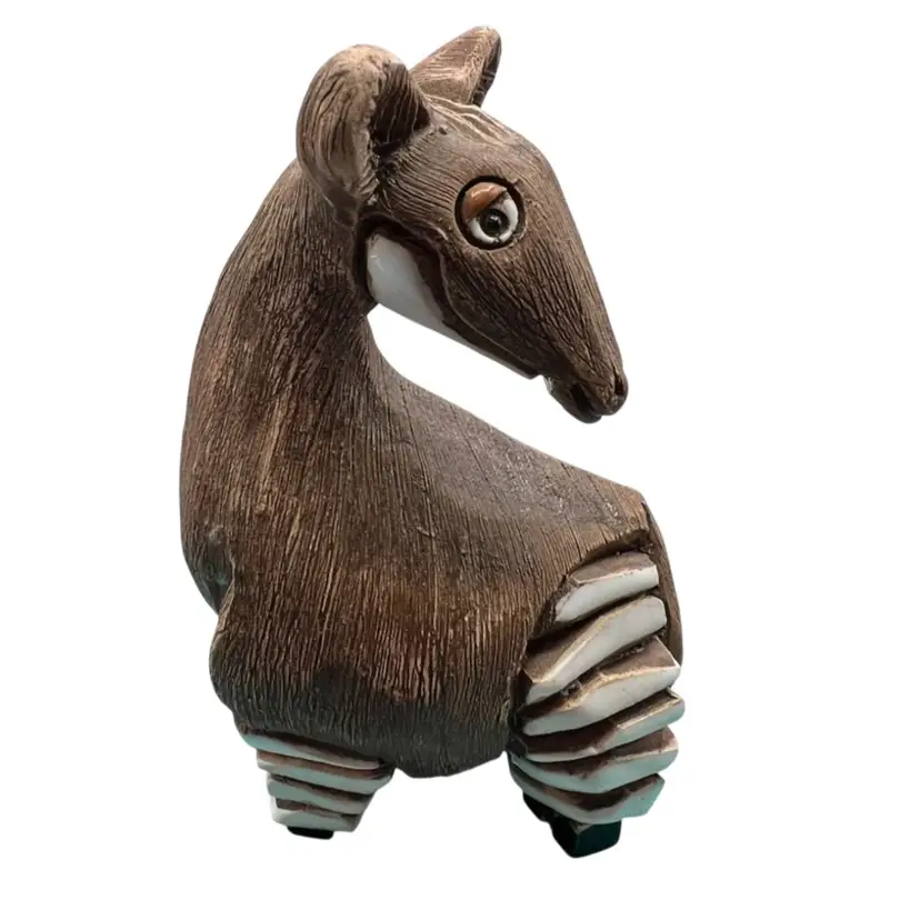 This an Okapi and retired very collectible made in Uruguay hand carved and signed. He is in perfect condition has his unique stripes. He is just looking at you saying take me home.