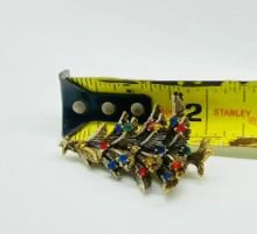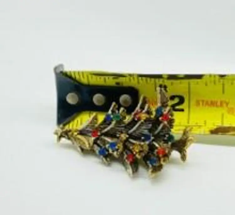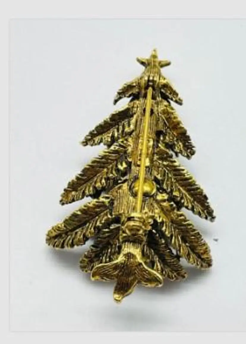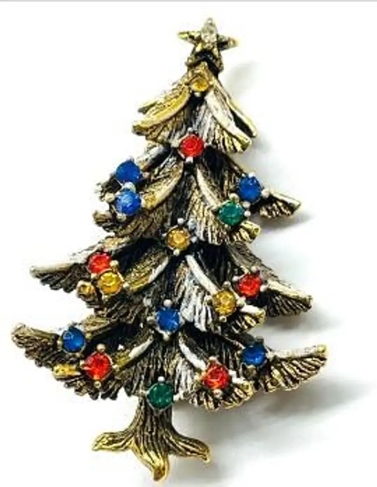 Celebrate the holiday season with this charming vintage Christmas tree brooch. Adorned with multicolor rhinestones, this festive piece is perfect for adding a touch of sparkle to your holiday outfit. Measures approximately 2 inches.