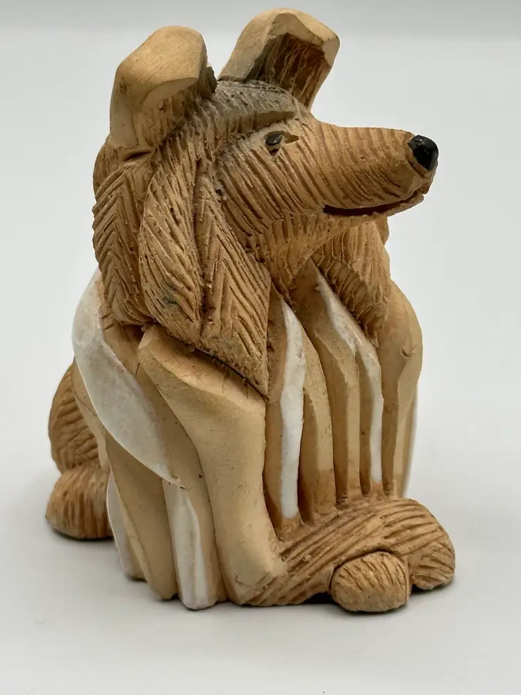 Vintage Artesania Rinconada Collie figurine. 1975. Retired piece. Handmade in Uruguay. Artist: aR – J&J Carbajales.