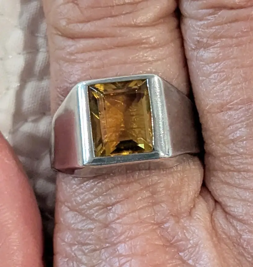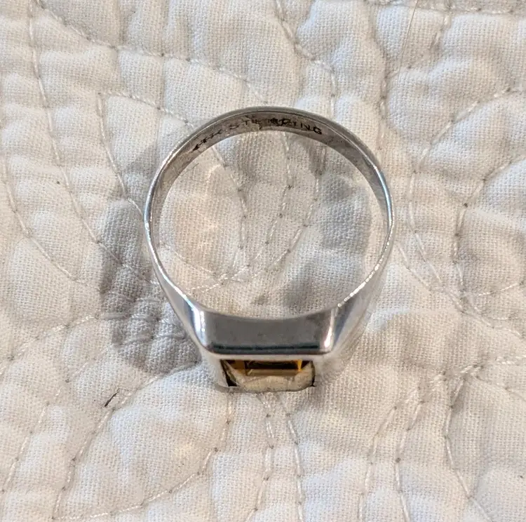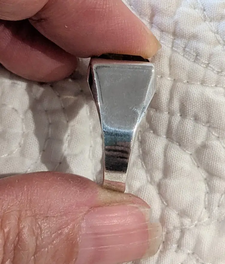 The front face of this ring is 1/2" long. Marked Sterling and bearing the artist's stamp