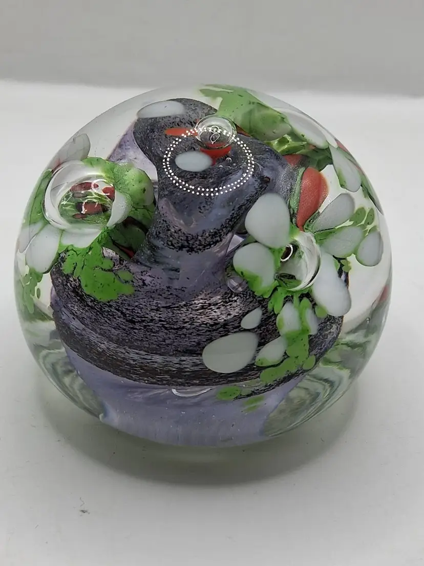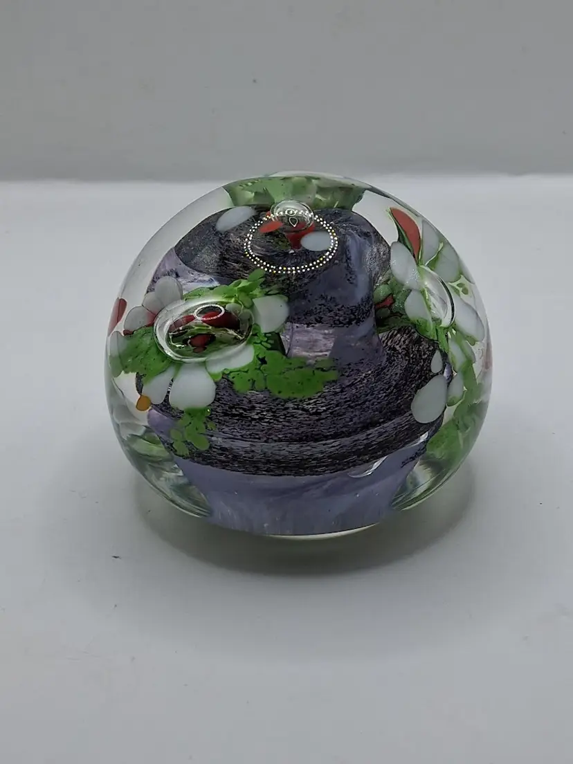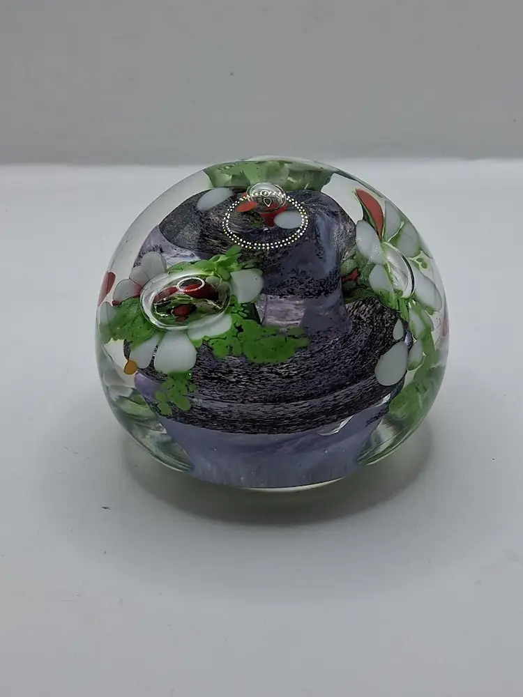 Vintage Artist Signed Multi-Color Art Glass Paperweight