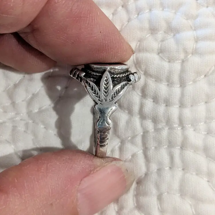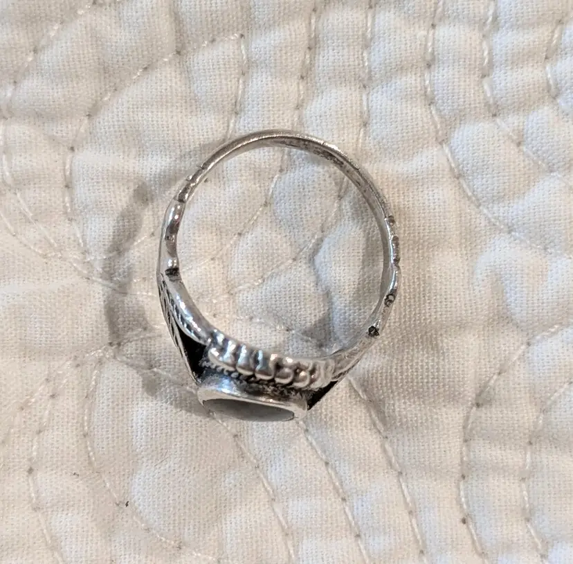 The front face of this ring is 5/8" long. Marked 925 with the artist's initials