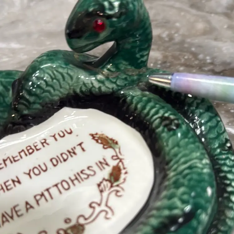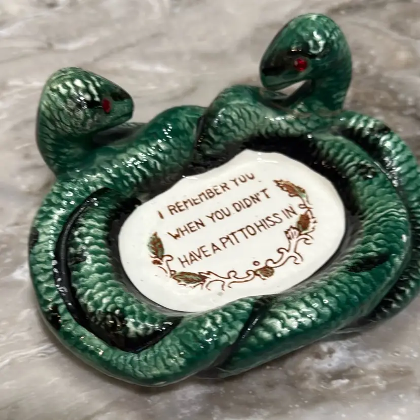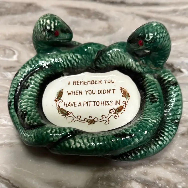 I Remember When you Didn’t Have A Pit To Hiss In.. Vintage ashtray unbranded and this has been glued as shown in pictures. 6” X 4”